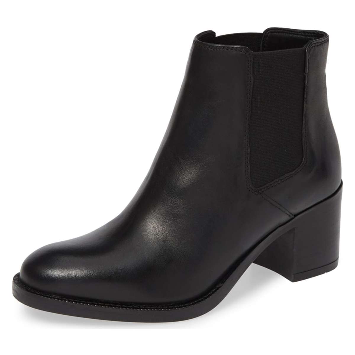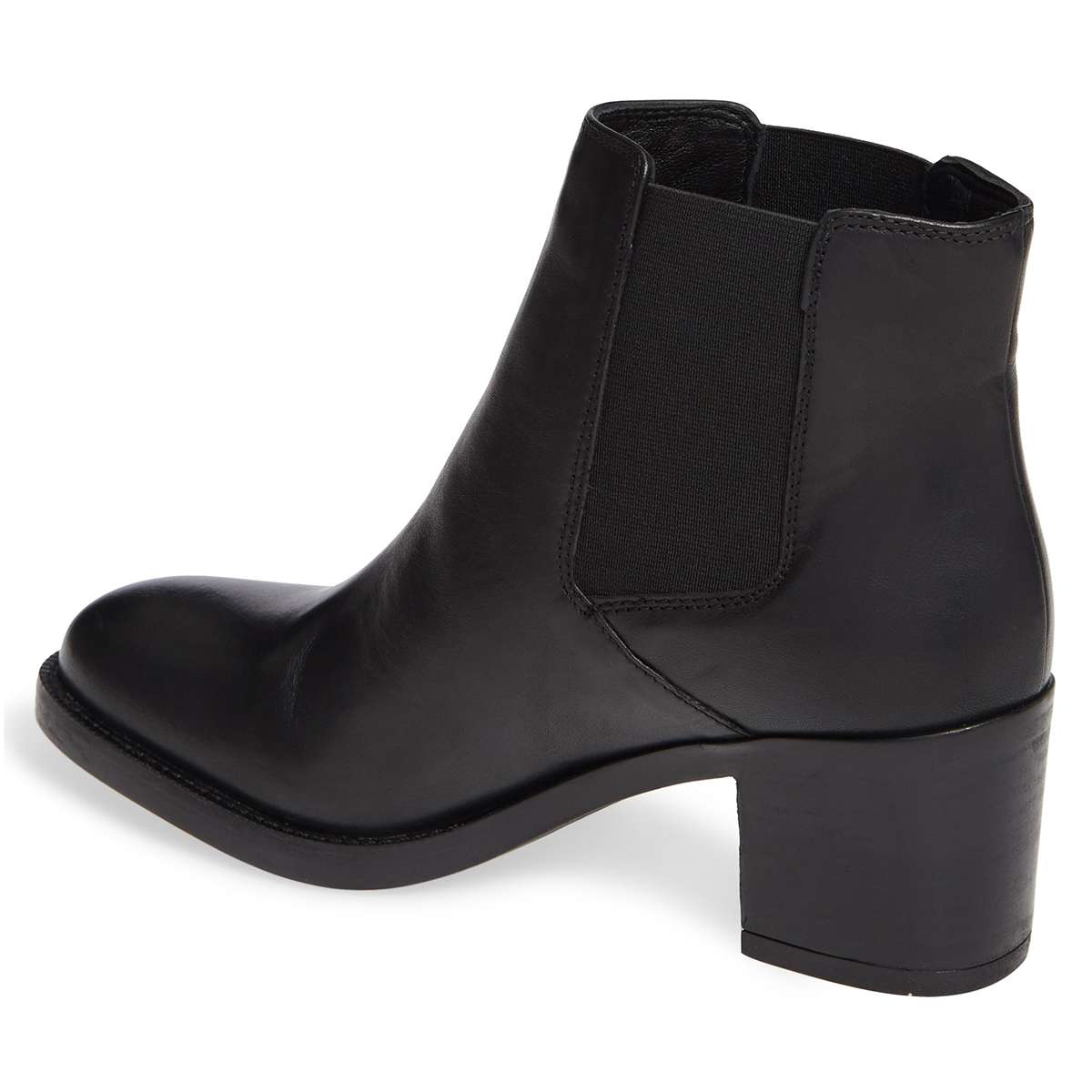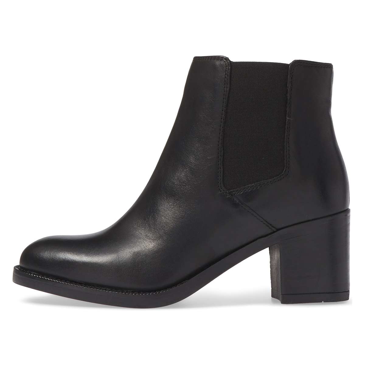 Special Designs: Black ankle boots with classic block heel and pull-on convenience.