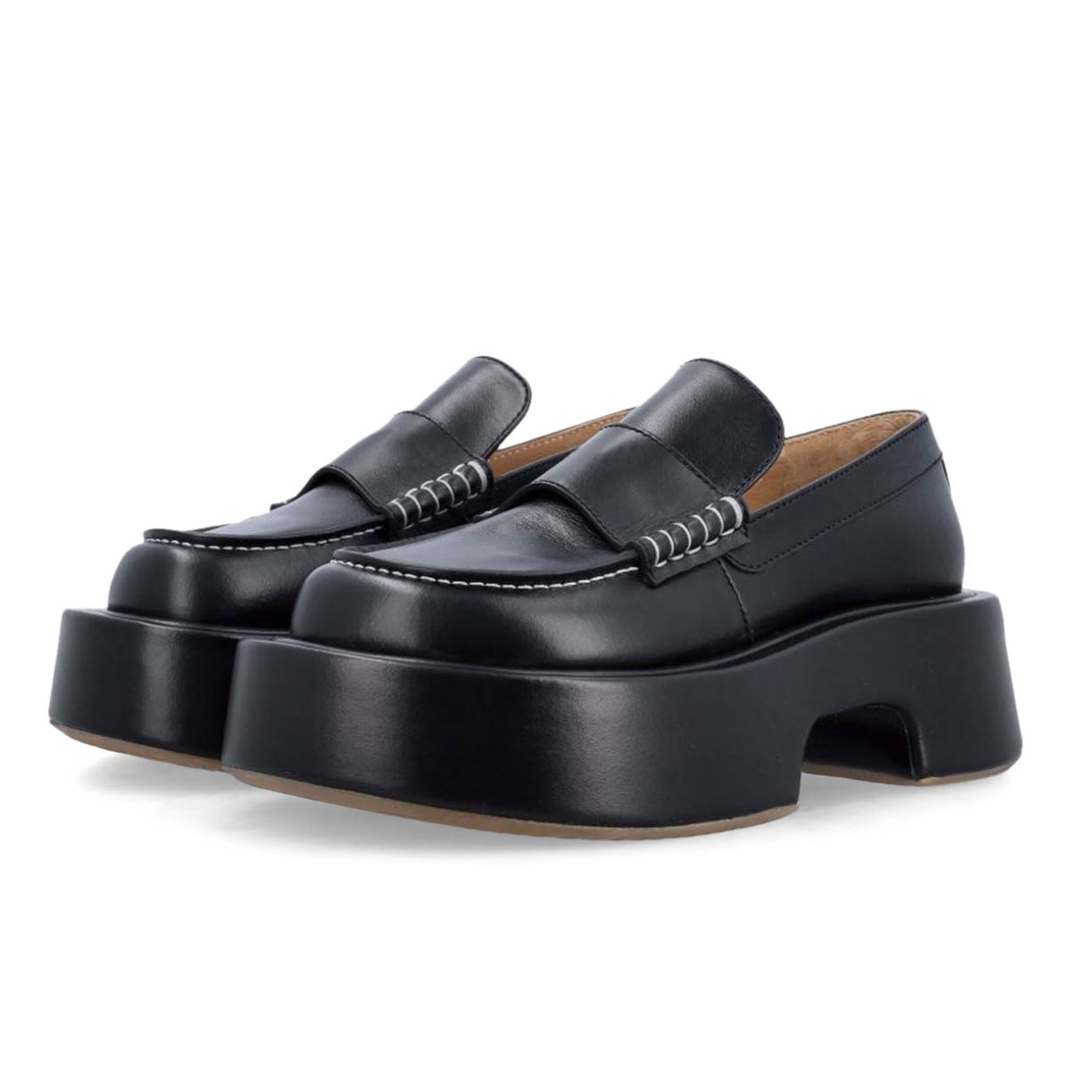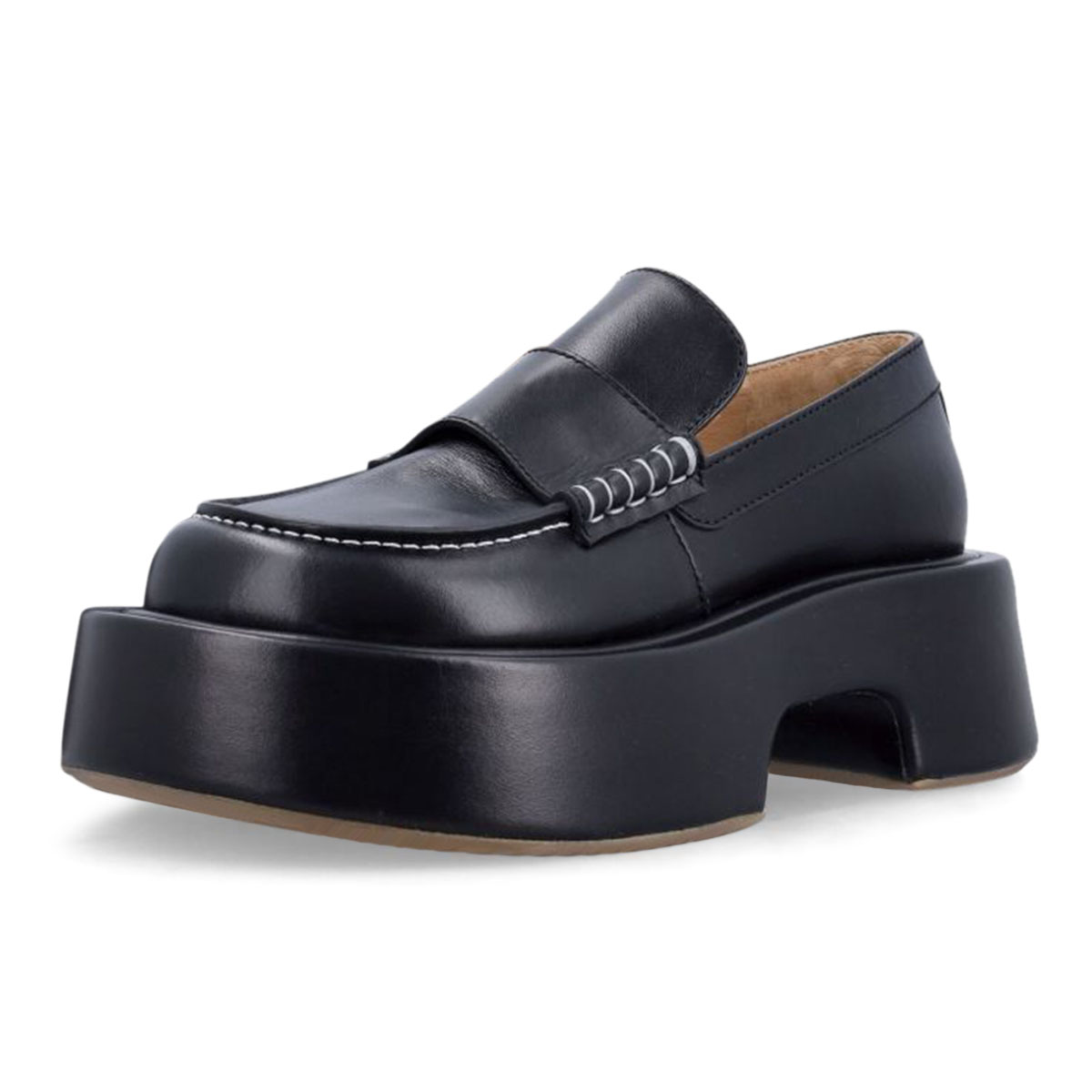 Special Designs: The black chunky loafers feature a round toe and a slip-on design.