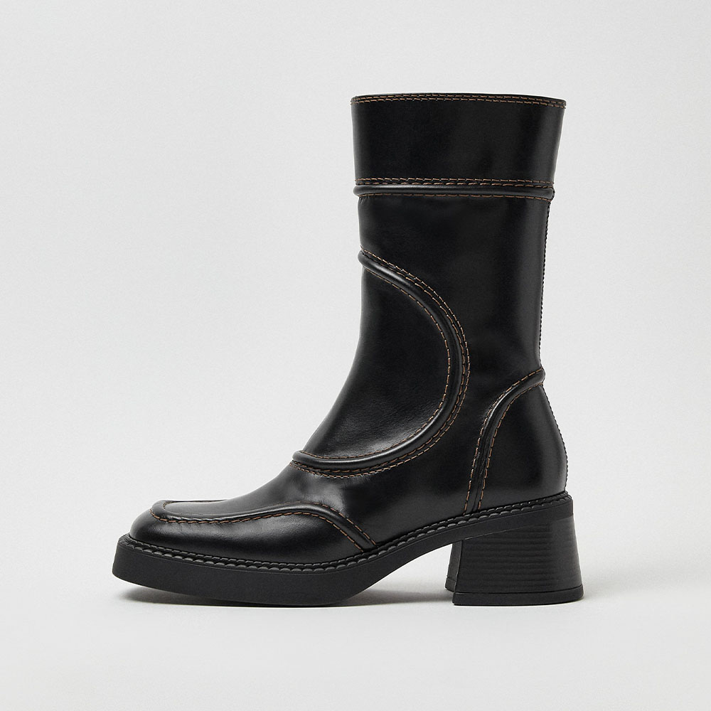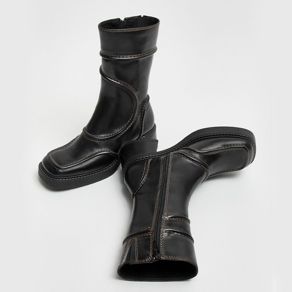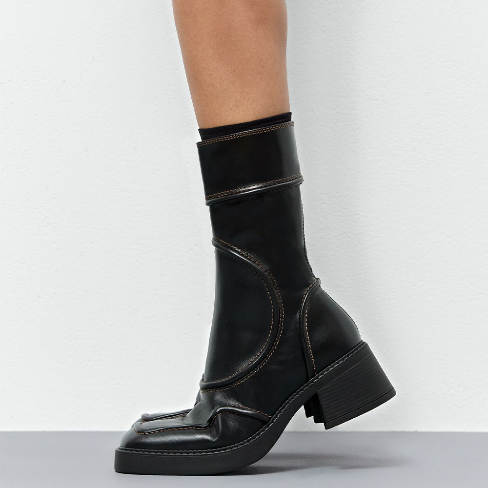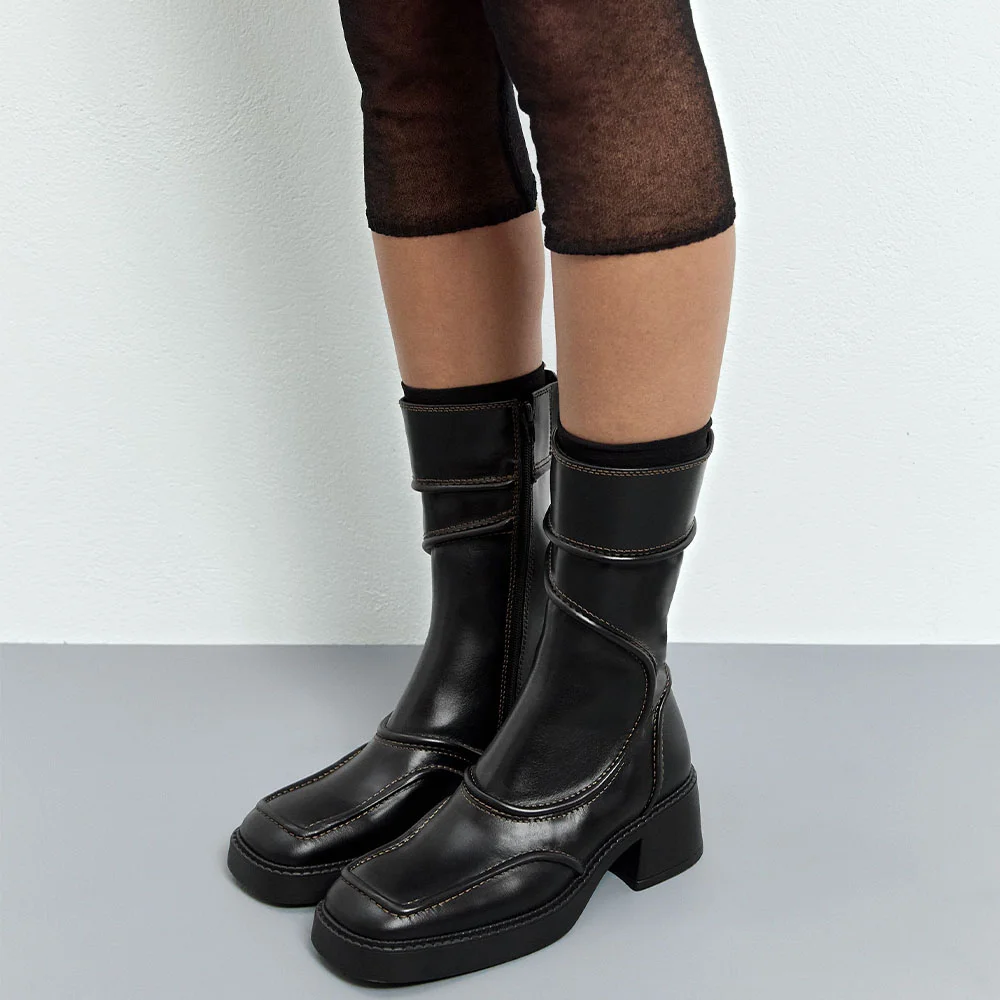 • Special Designs: The black boots feature a square toe and chunky heel design.