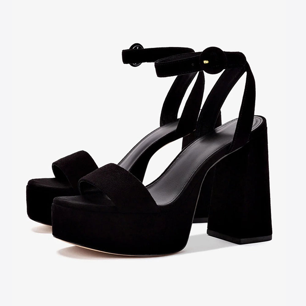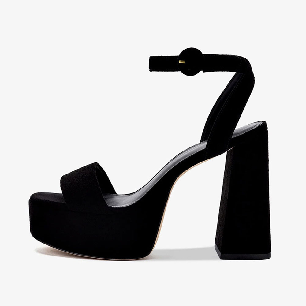 Black Vegan Suede Ankle Strap Women's Heel Sandals with Platform
