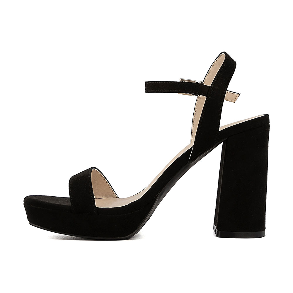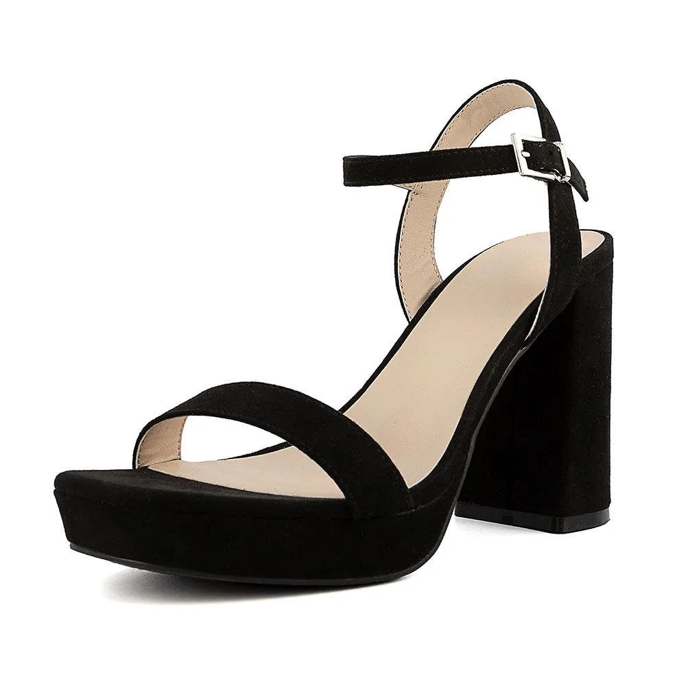 Black Vegan Suede Buckle Ankle Strap Platform Women Sandals