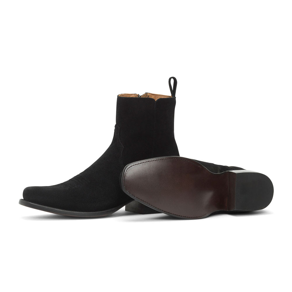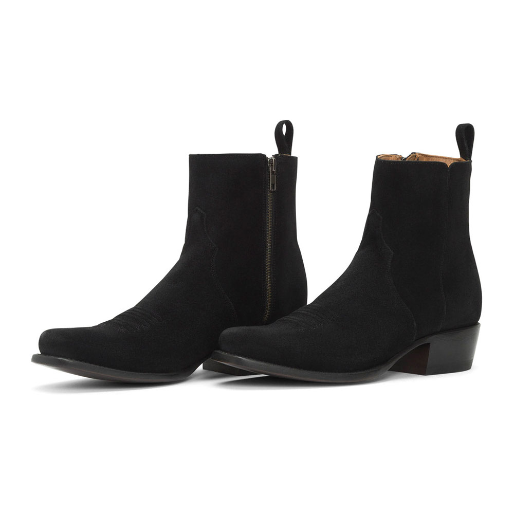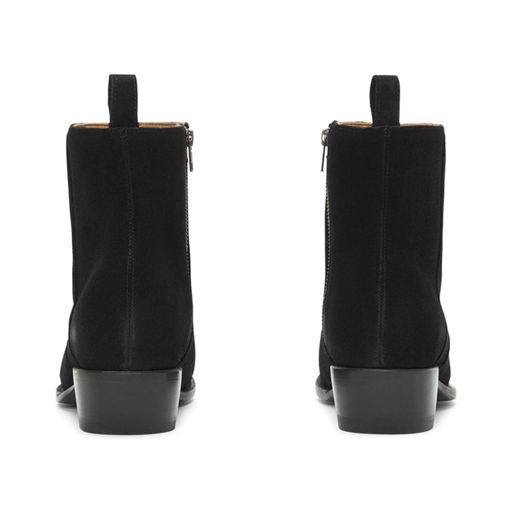 Black Vegan Suede Chunky Heel Square Toe Zipper Booties for Women