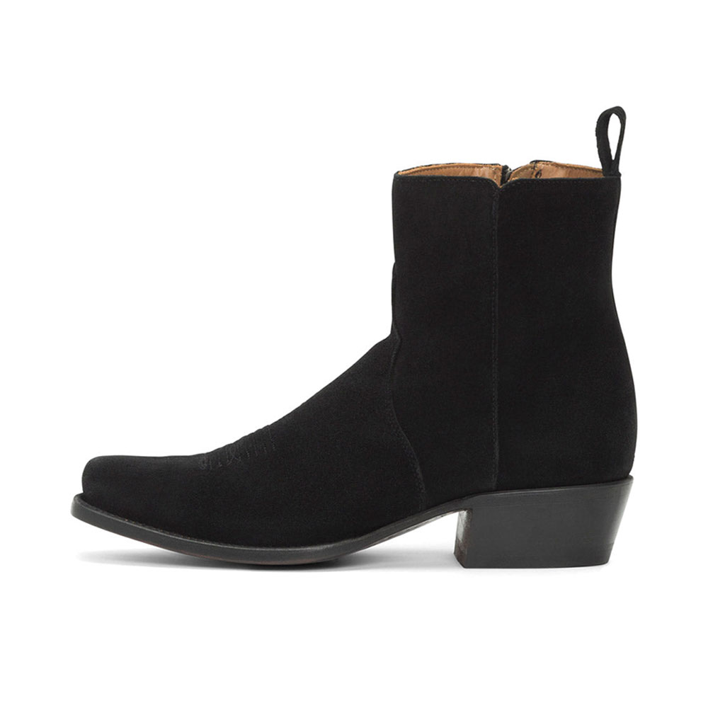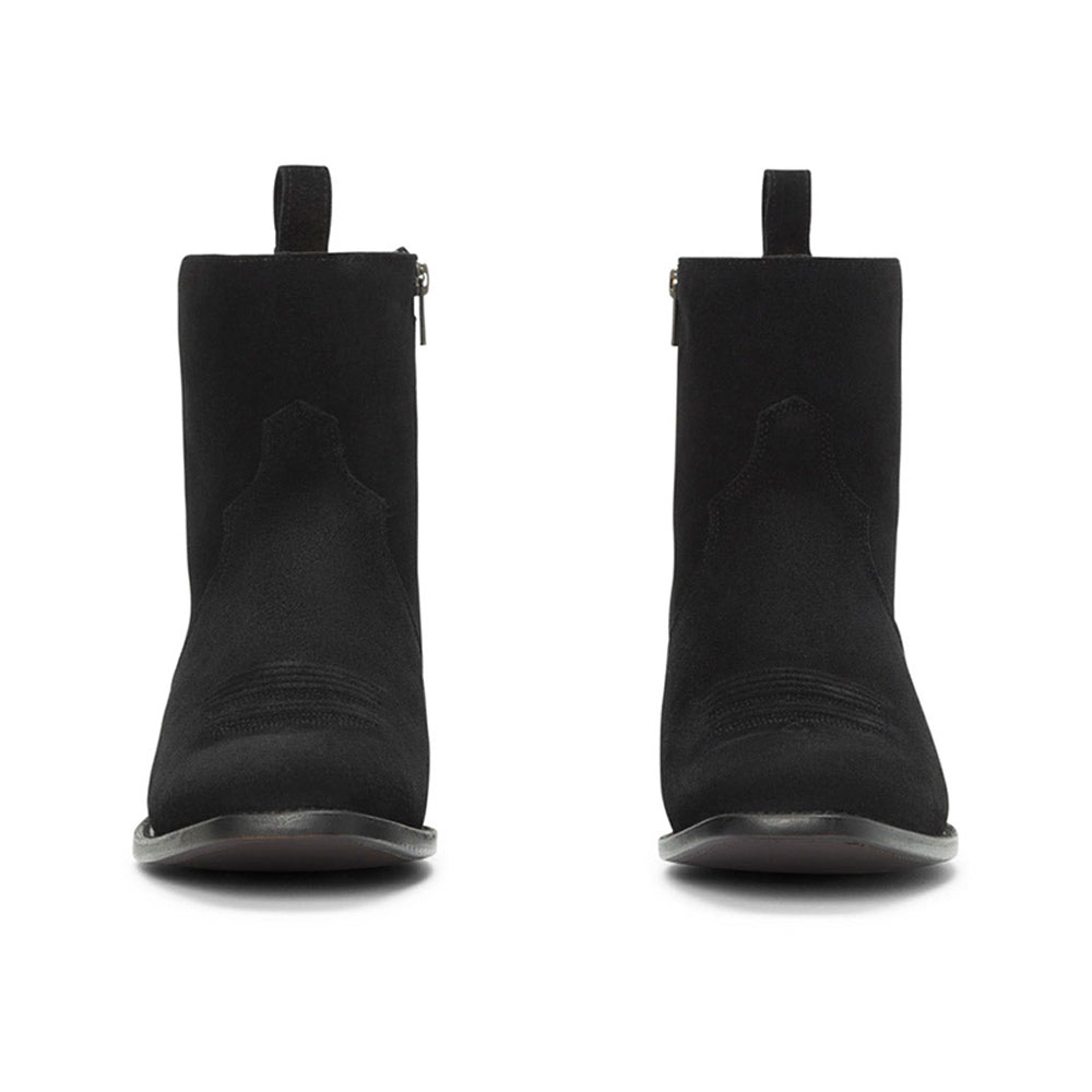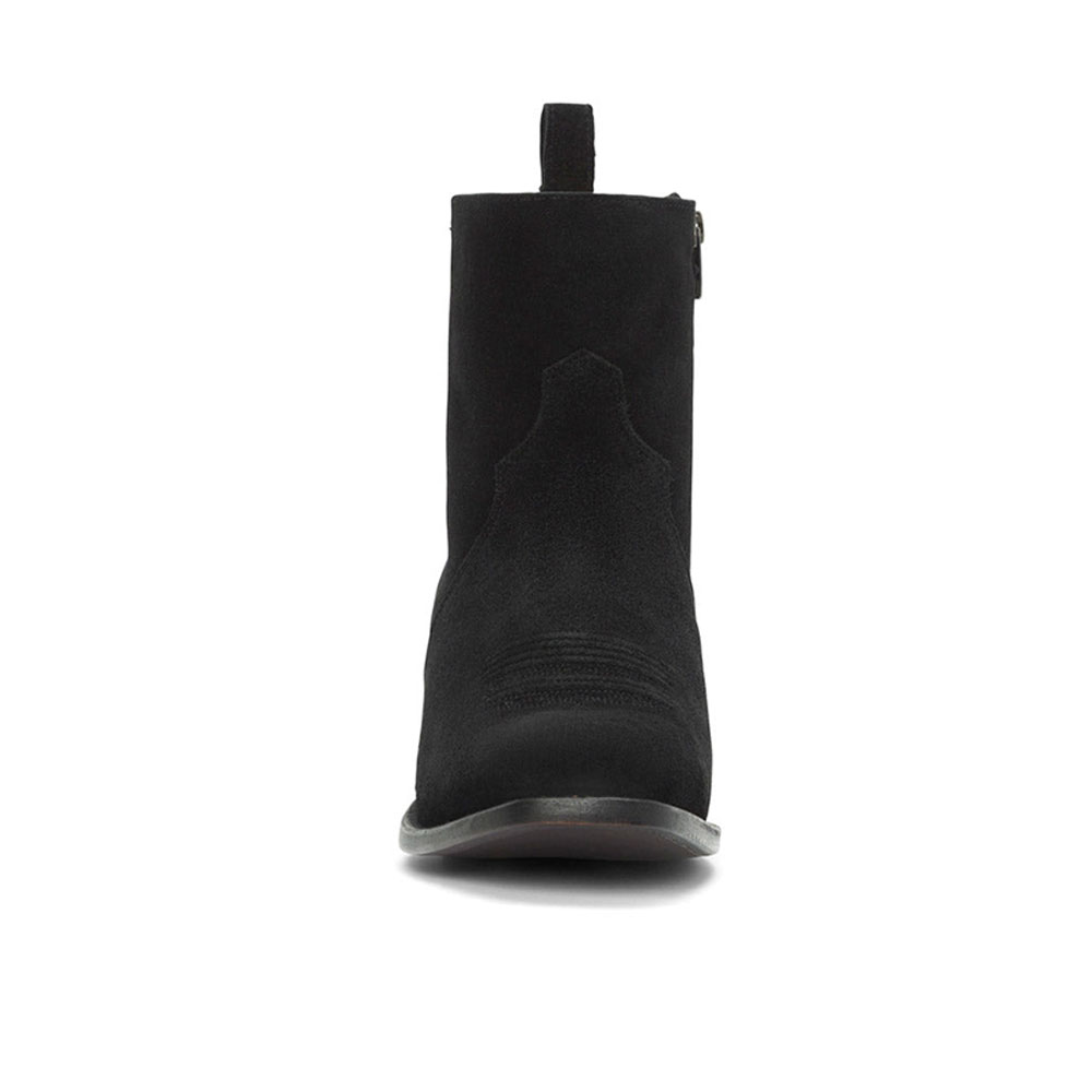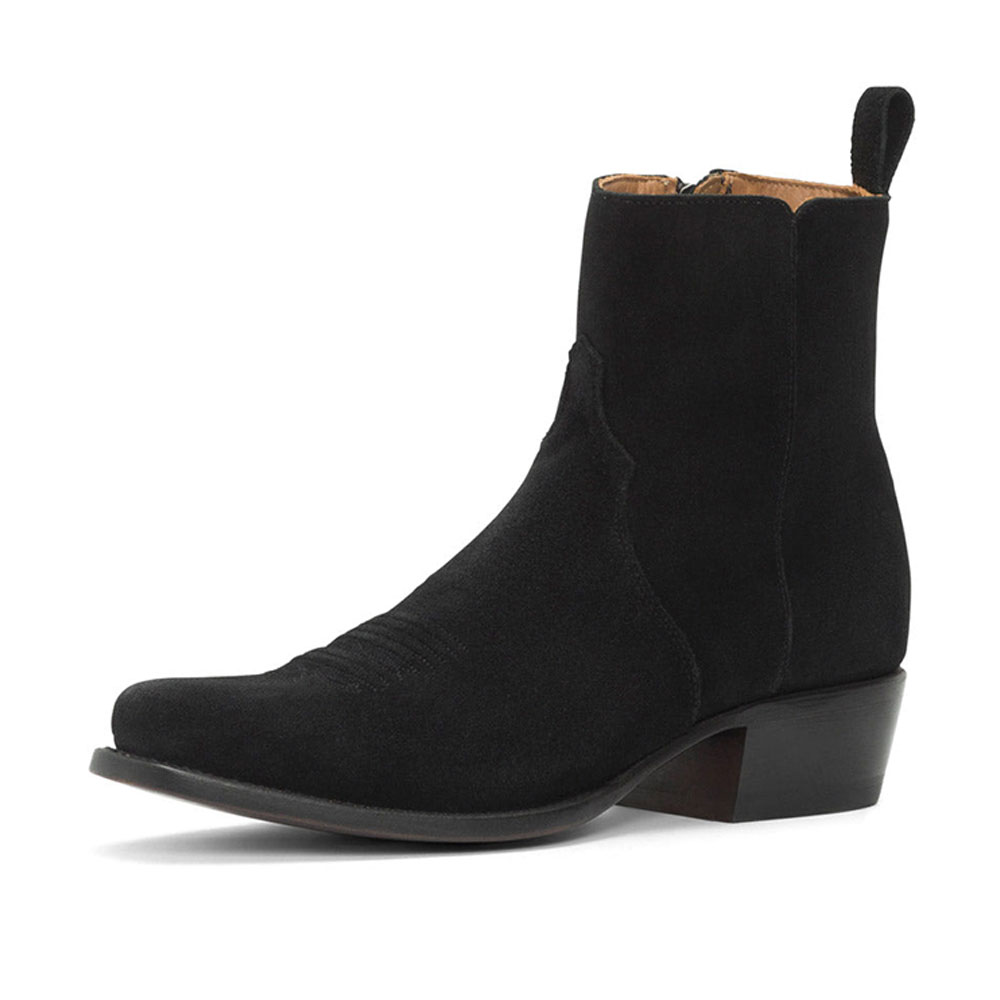 Black Vegan Suede Chunky Heel Square Toe Zipper Booties for Women