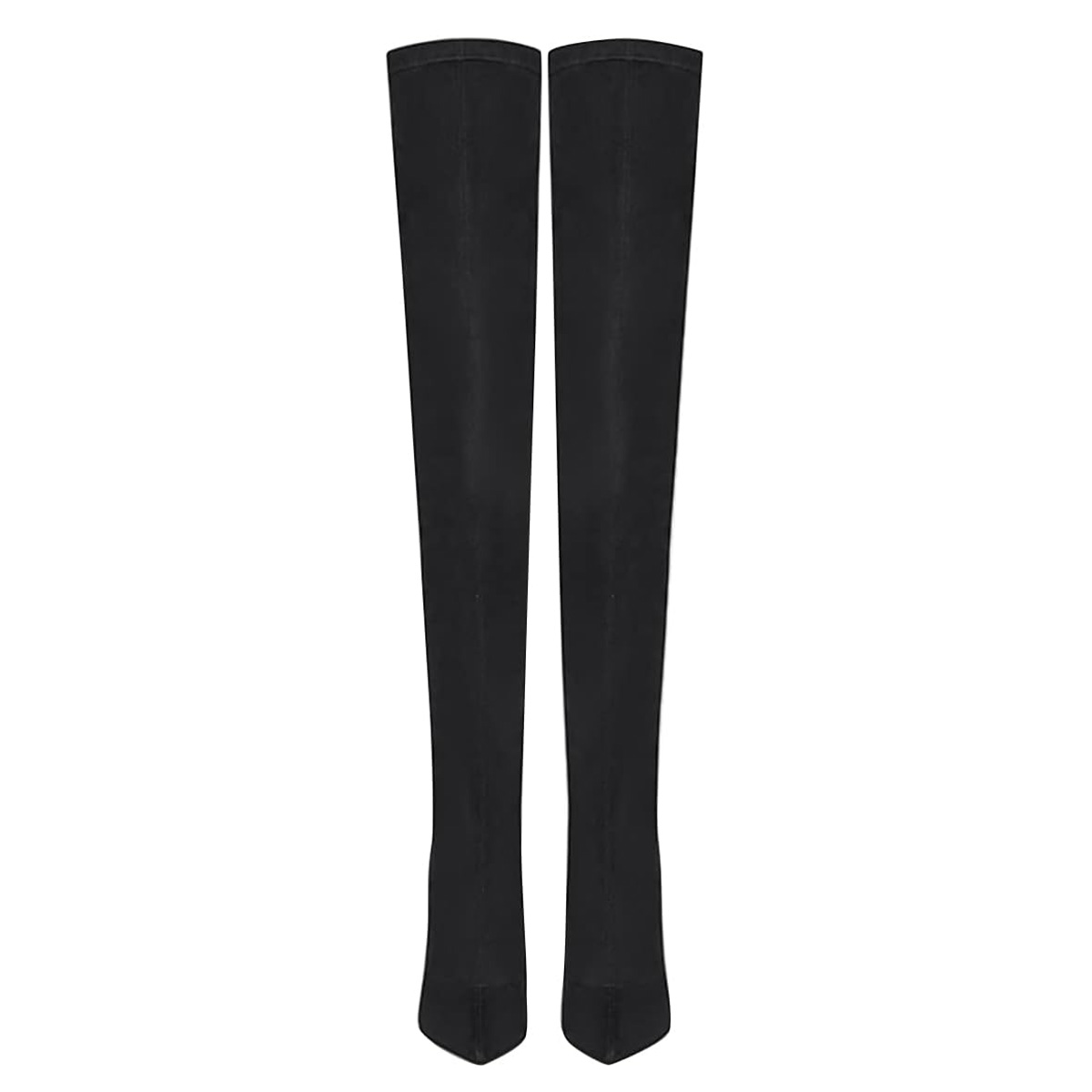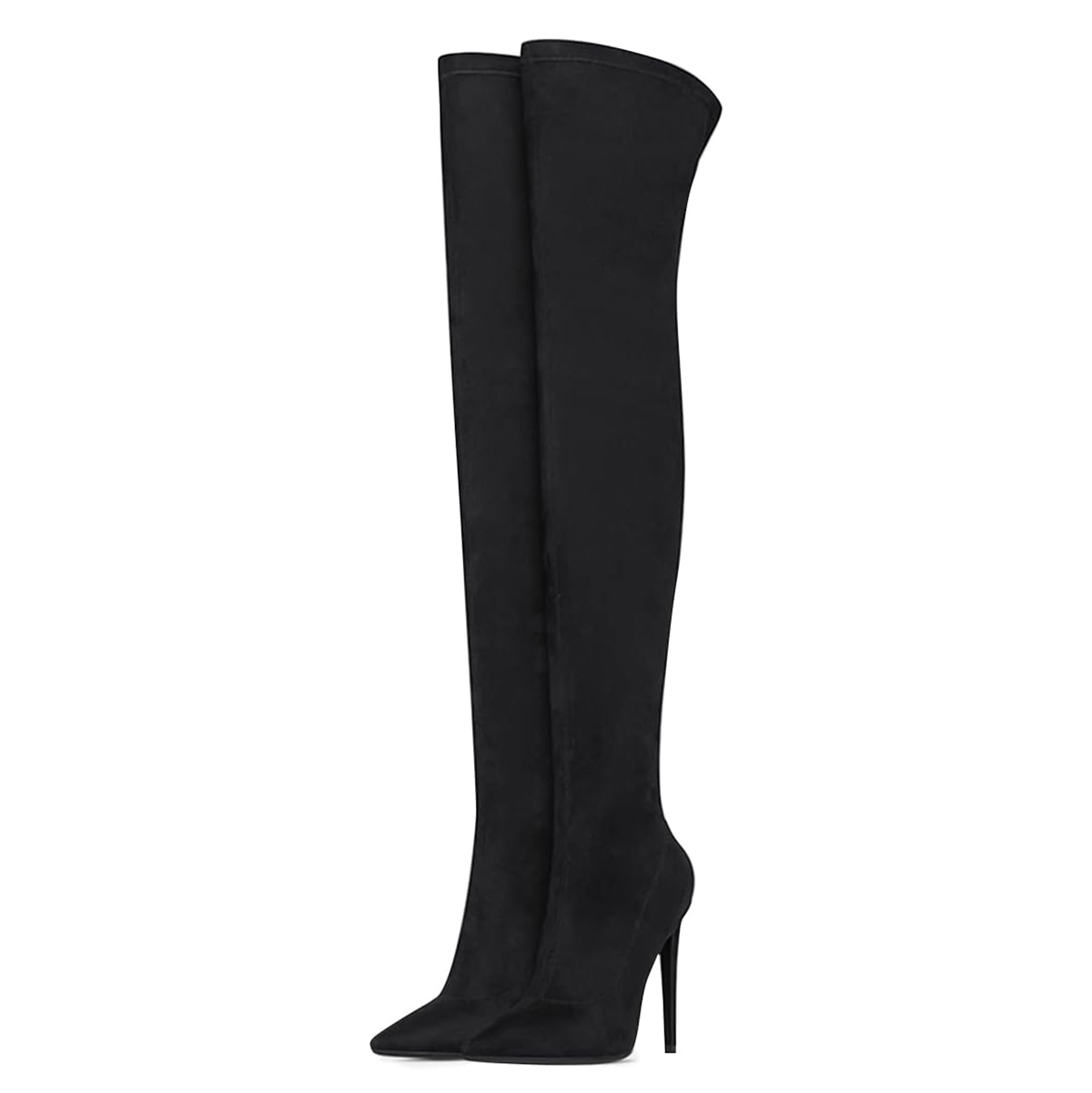 Black Vegan Suede Pointed Toe Stiletto Heel Pull-On Thigh High Boots