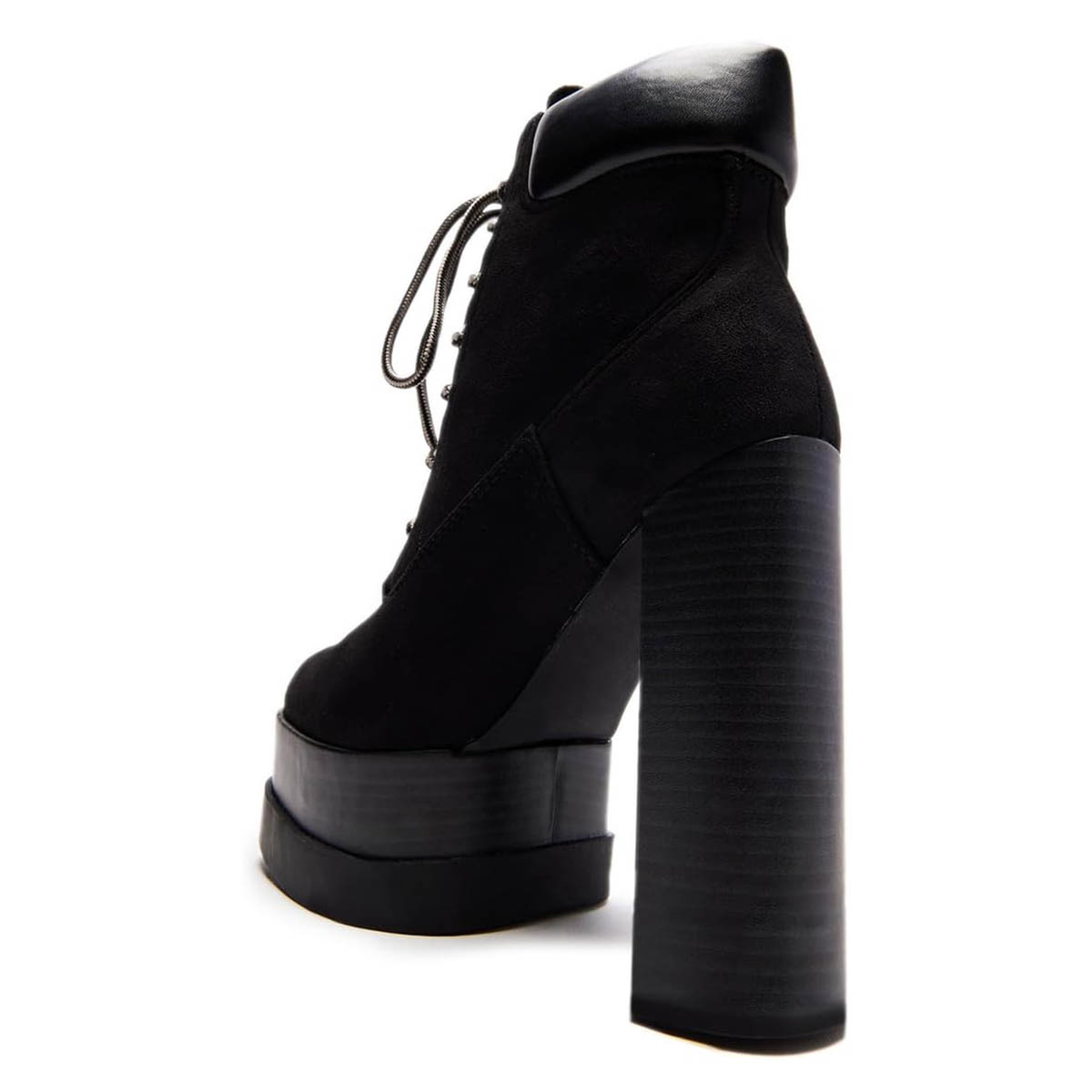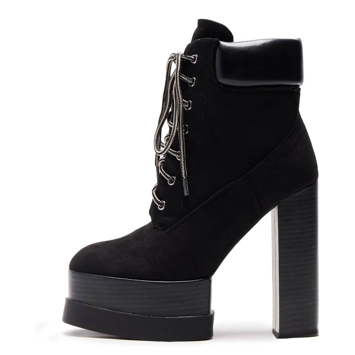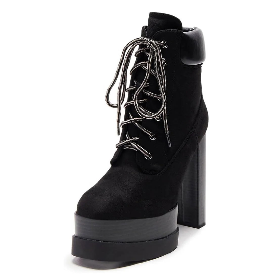 Black Vegan Suede Round Toe Platform Lace-Up Booties for Women