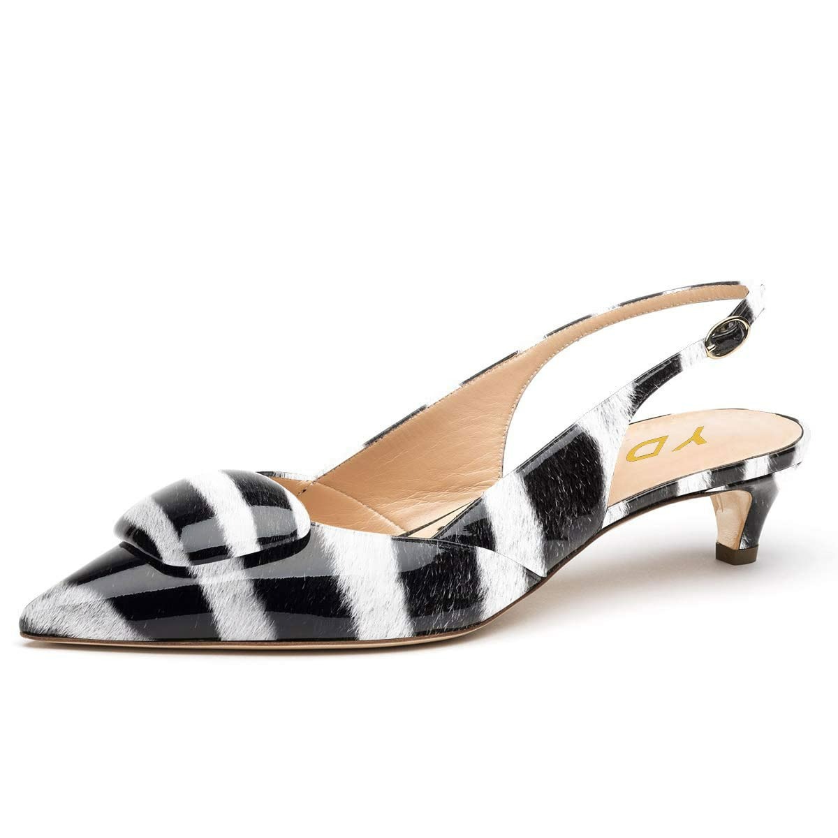 • Special Designs: The pointed-toe slinbcak heels feature comfortable kitten heels and a zebra print design.