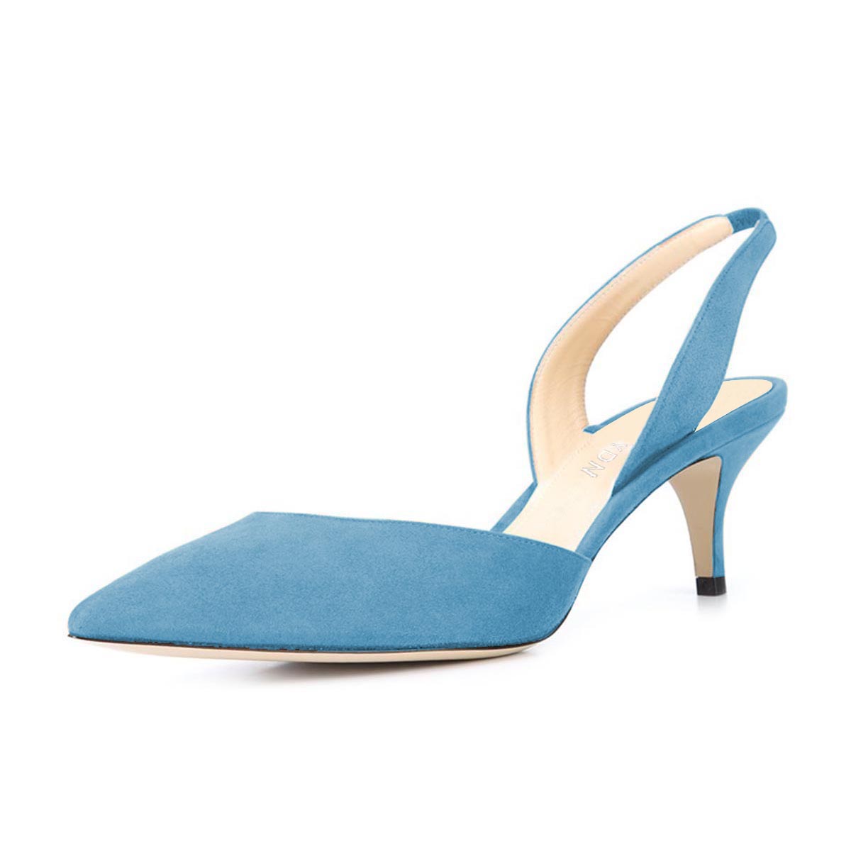 Blue Faux Suede Pointed Toe Slingback Classy Kitten Heel Pumps