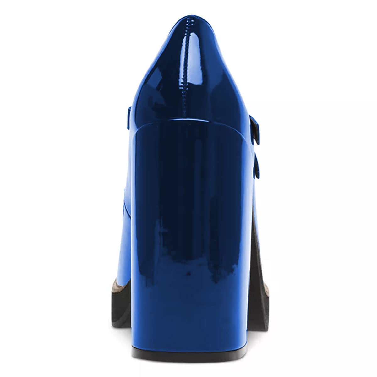 Blue Square Toe Double Buckle Strap Mary Jane Platform Shoes
