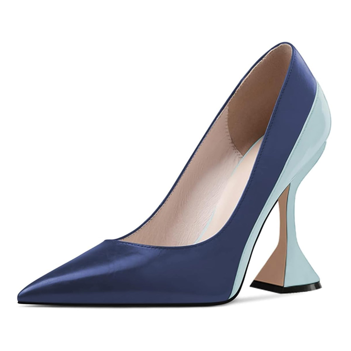 • Special Designs: Blue two tone pumps feature a stylish pointed-toe and flared heel design.