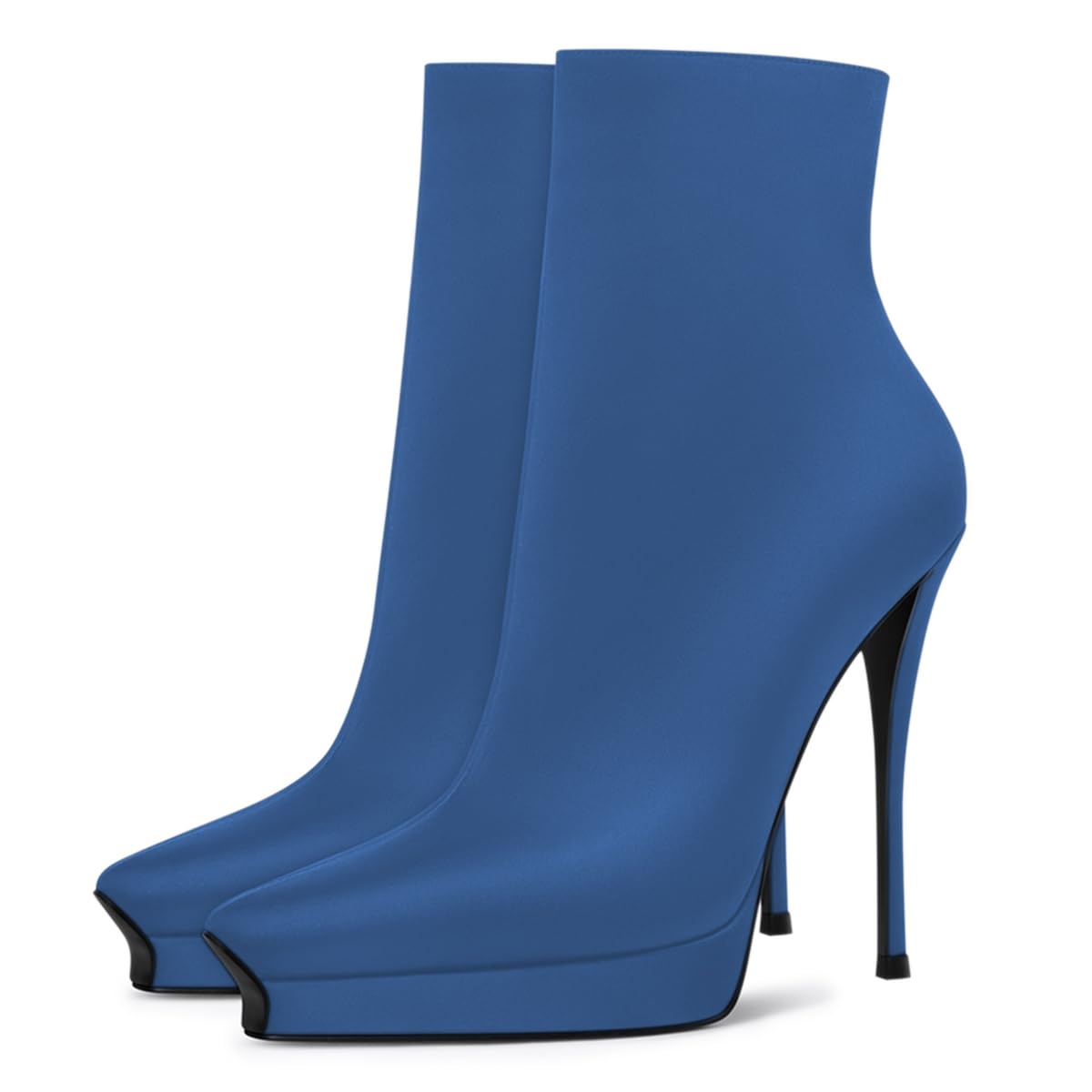 Blue Vegan Leather Side-Zip Platform Stiletto Heel Ankle Boots