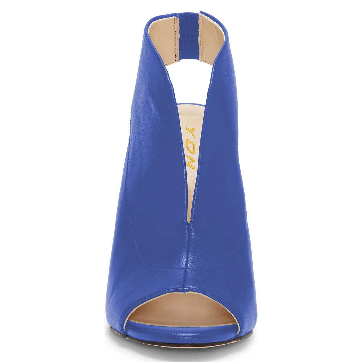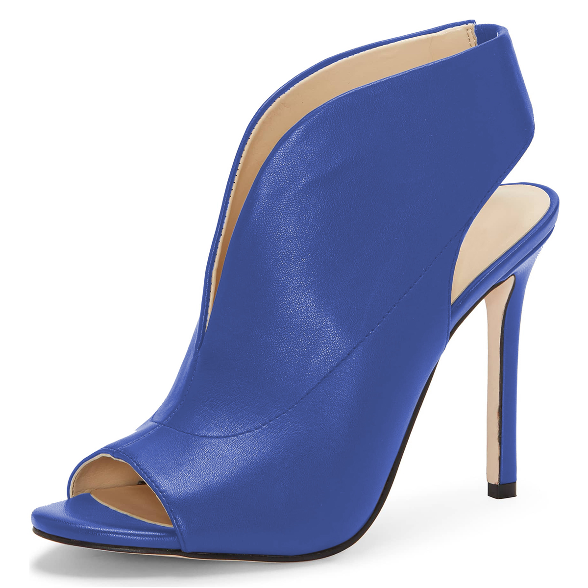 Blue Vegan Leather Slingback Shoes Peep Toe High Heels Sandals