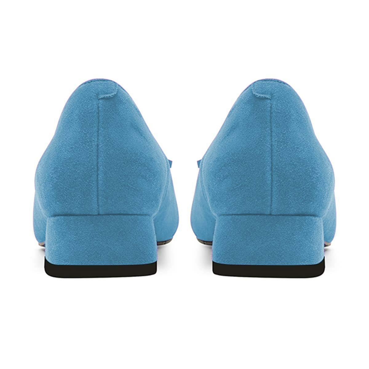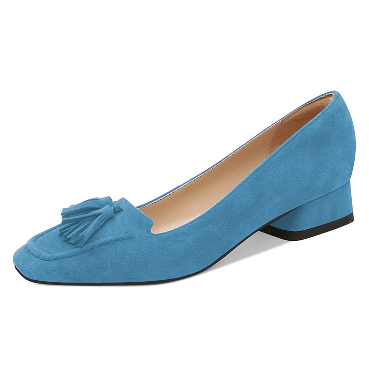 Blue Vegan Suede Block Heel Loafer Pumps Shoes with Tassels