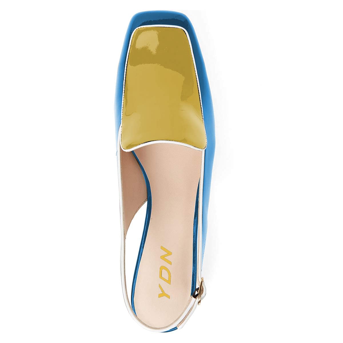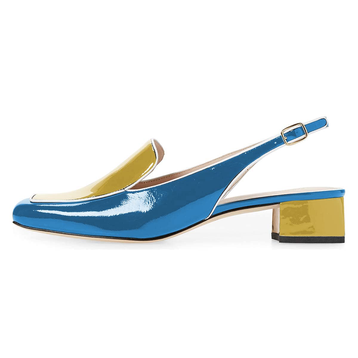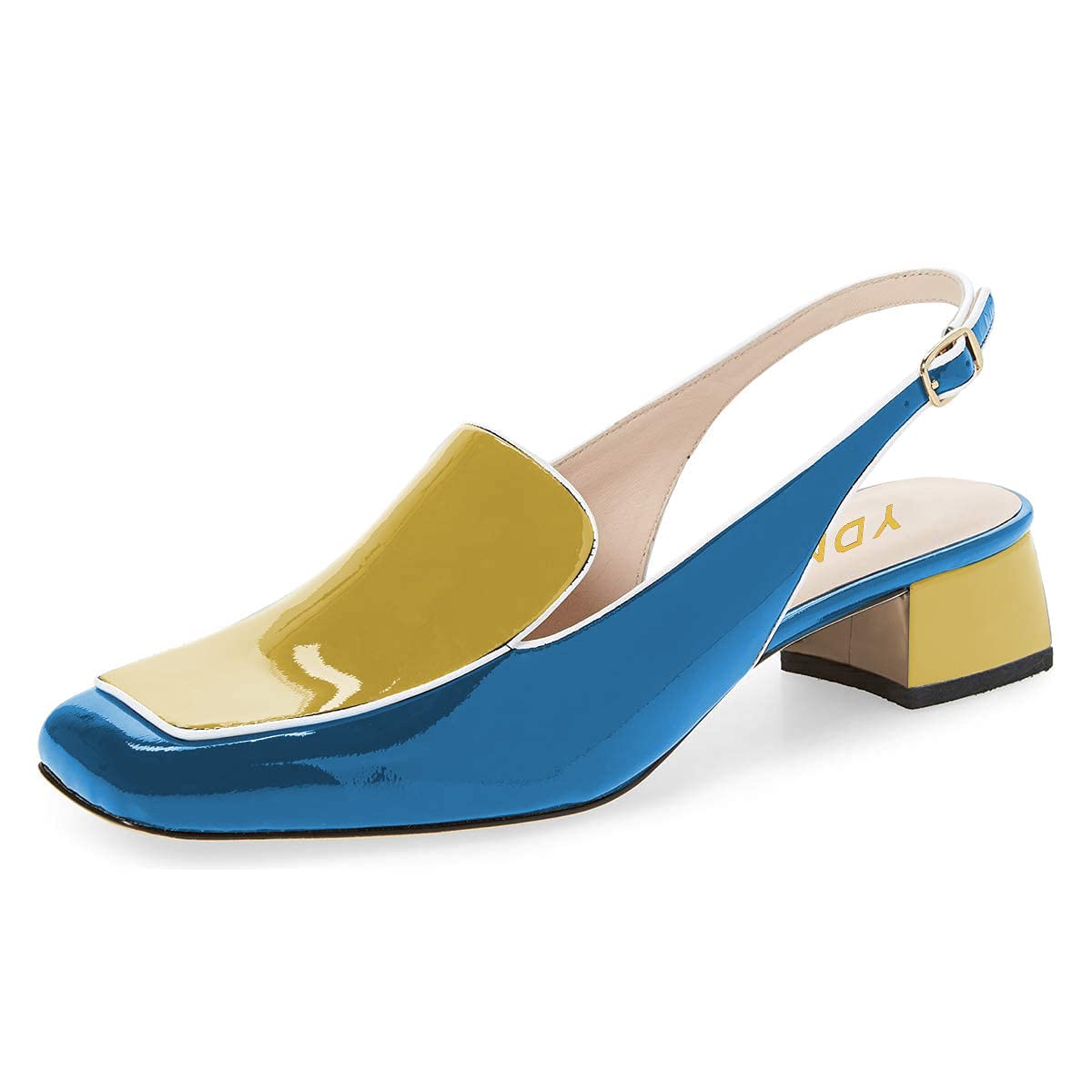 Blue & Yellow Patent Leather Buckle Slingback Women's Loafers