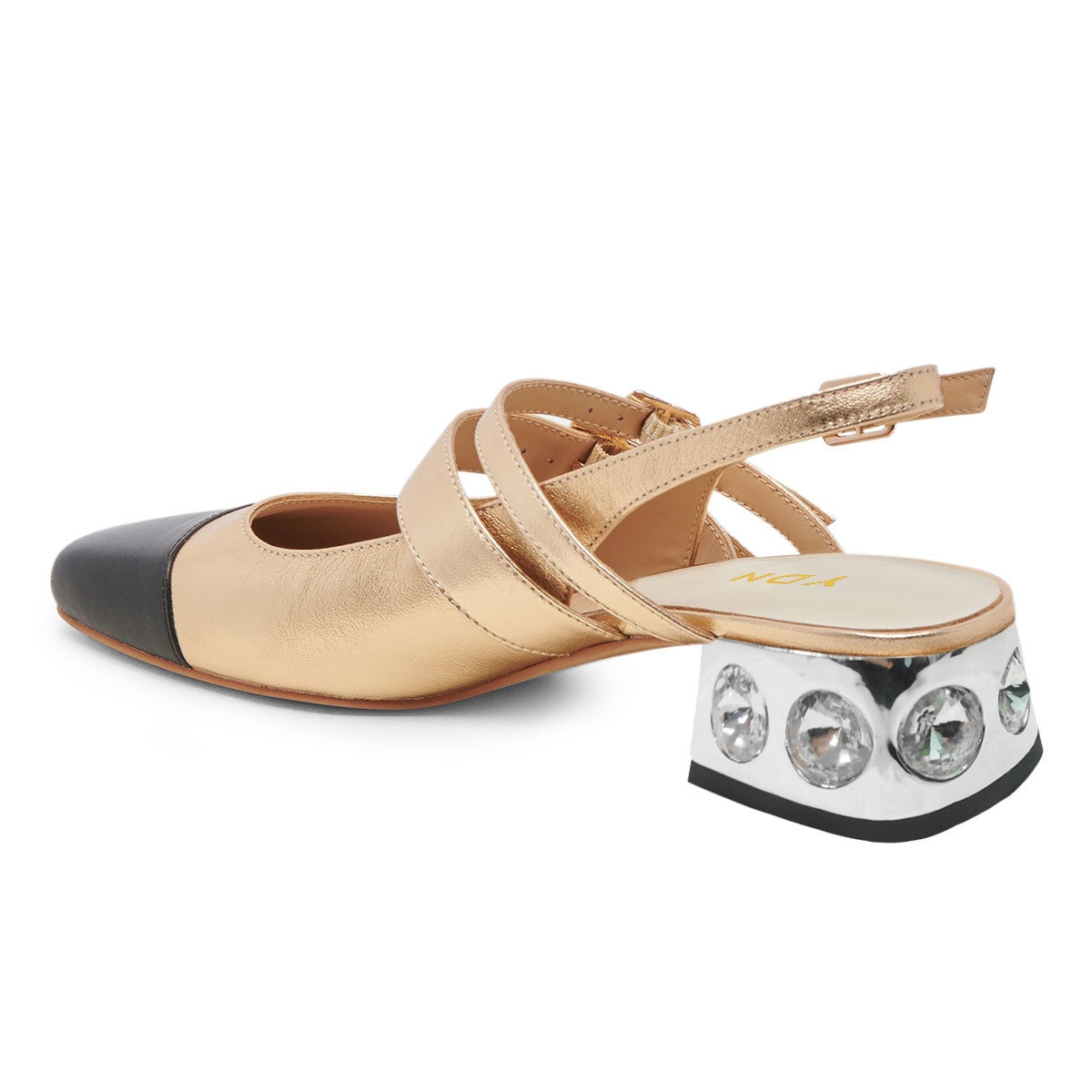 Bronze Metallic Touch Square Toe Slingback Decorative Heel Loafers
