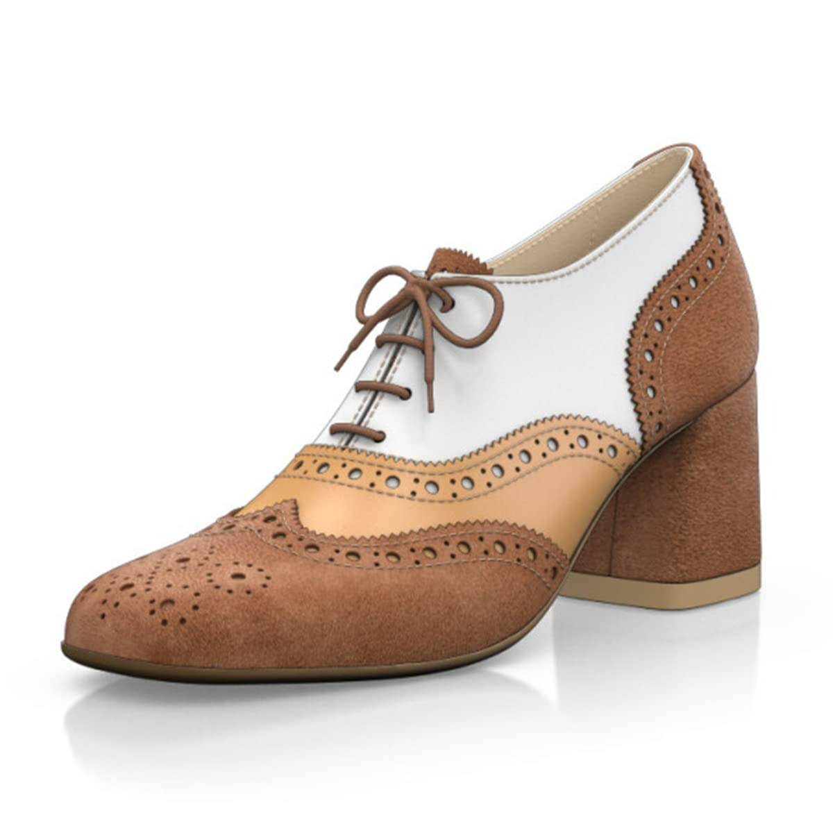 Special Designs: The round-toe block heel Oxfords feature chic perforated patterns and a lace-up design.