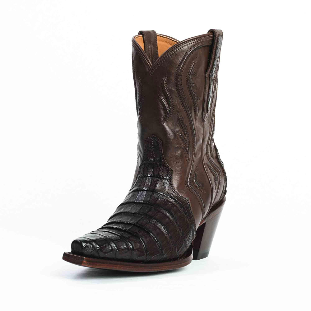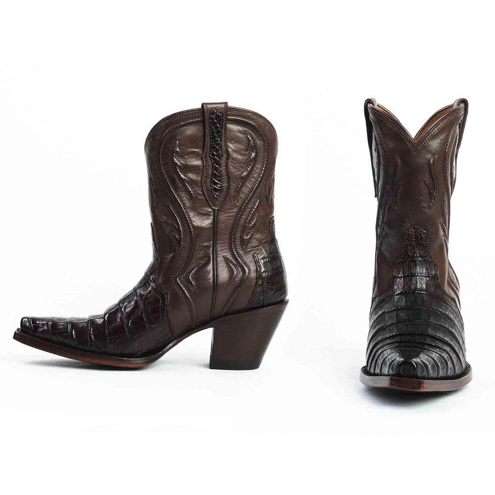 • Special Designs: The snip-toe chunky heel cowgirl boots feature a croc embossment and stitch, and decorative pull tabs at the top add a touch of Western charm.