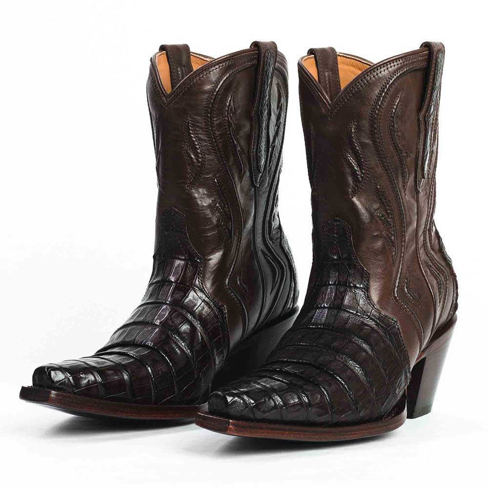 Brown Chunky Heel Croc Embossed Stitch Western Boots for Women