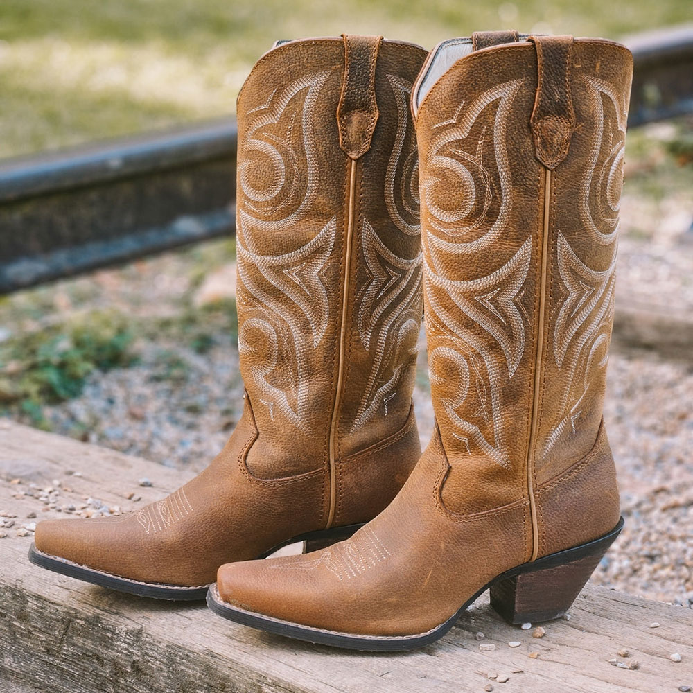 Special Design: The snip-toe cowgirl mid-calf boots feature comfortable chunky heels and delicate embroidery.