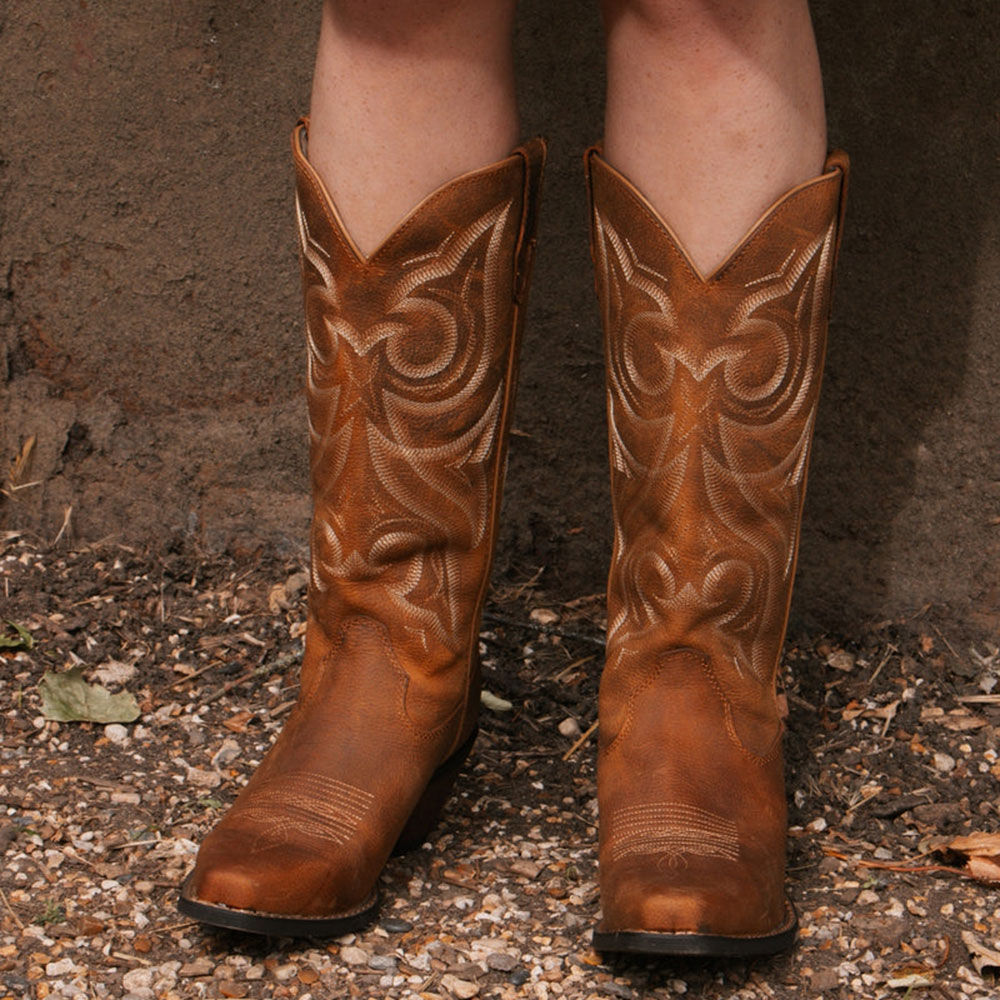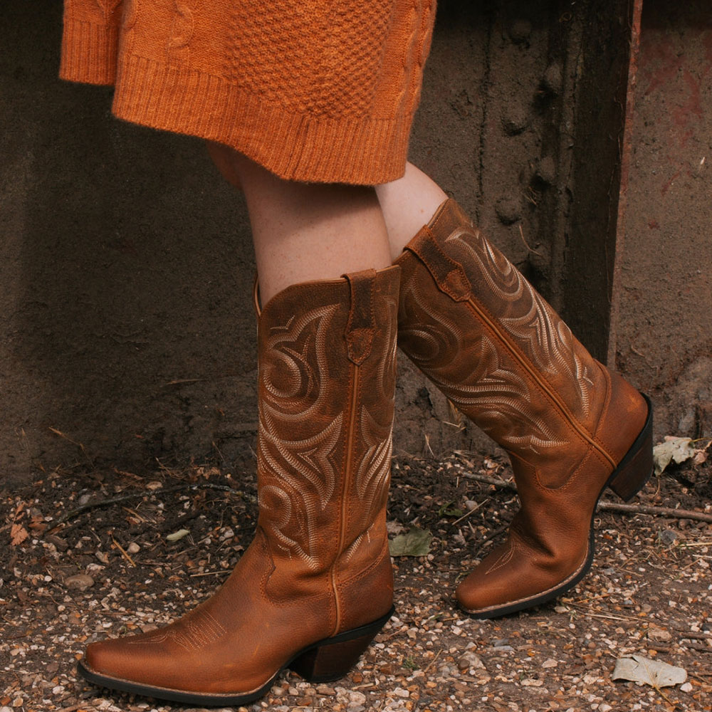 Brown Chunky Heel Embroidered Snip Toe Cowgirl Mid-Calf Boots