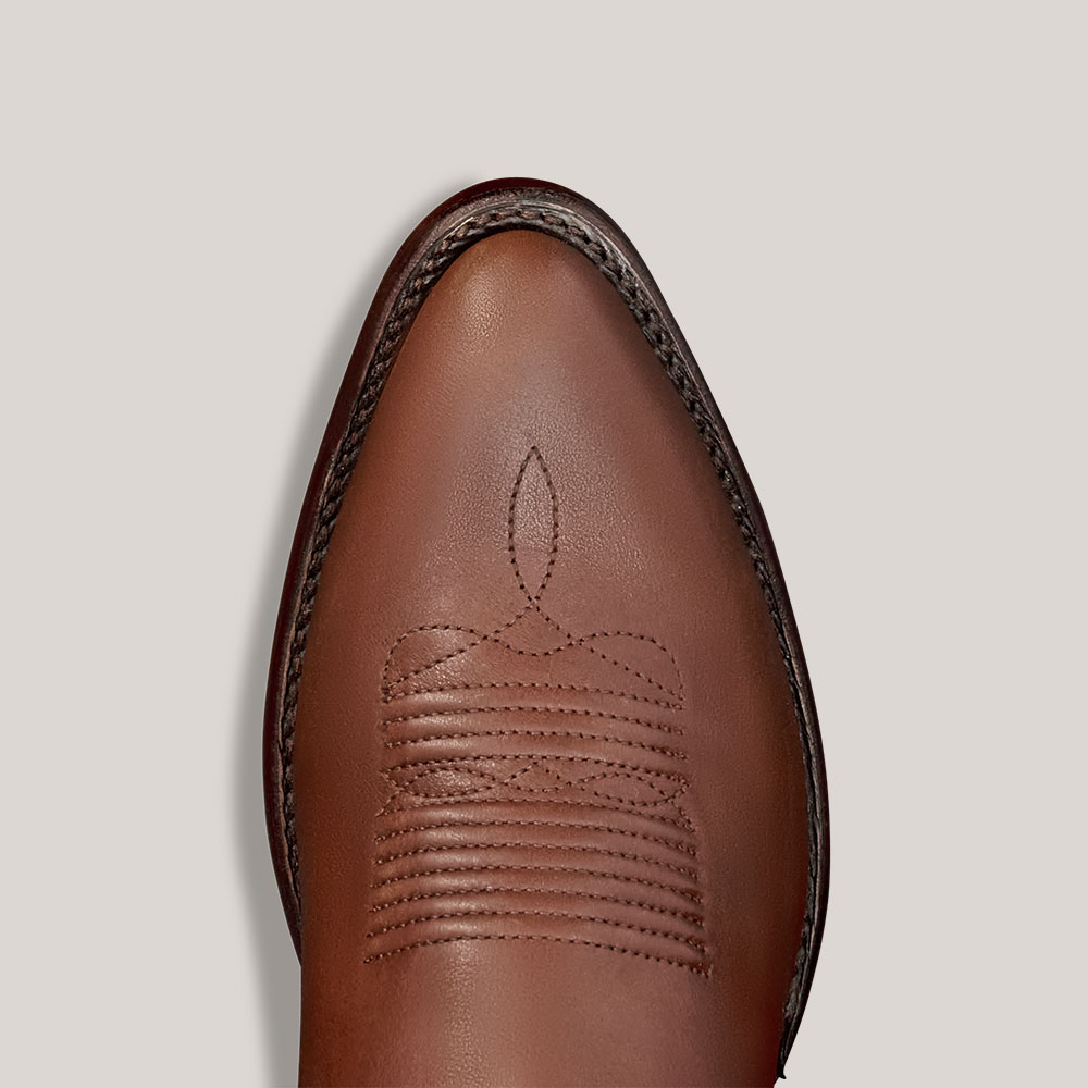 Brown Closed Toe Mid Heel Embroidered Slip On Western Boots for Women