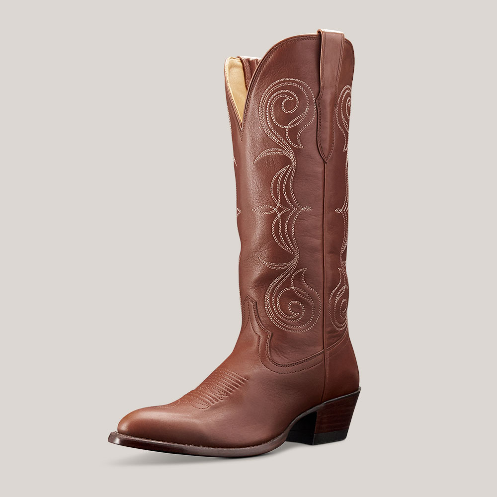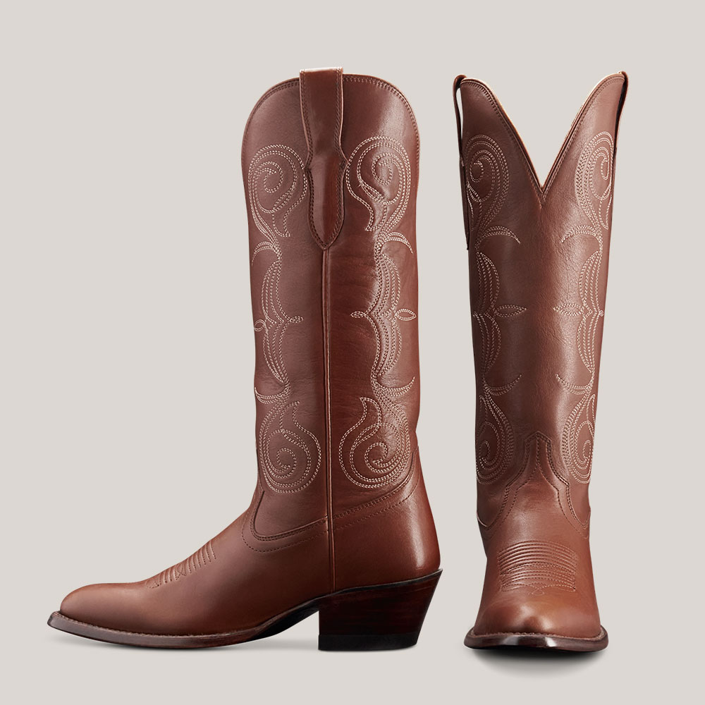 Special Designs: These cowgirl boots feature a embroidery, a mid-block heel, and a slip-on design.