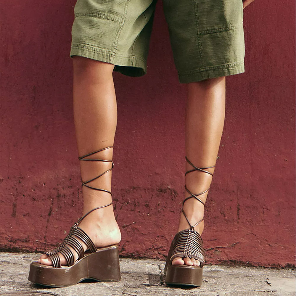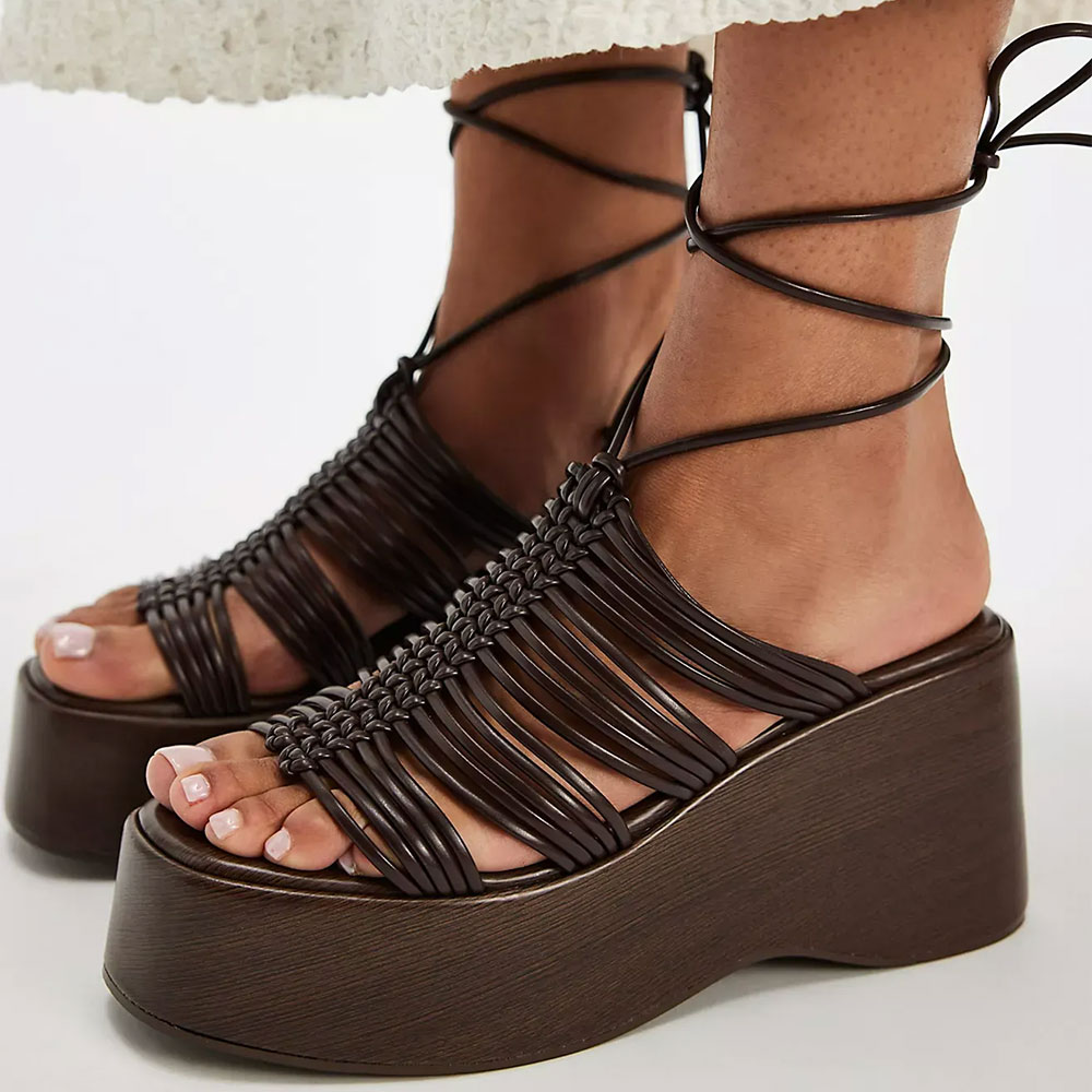 • Special Designs:The brown sandals feature a opem round toe and wedge heel, a bold platform, with lace-up straps.
