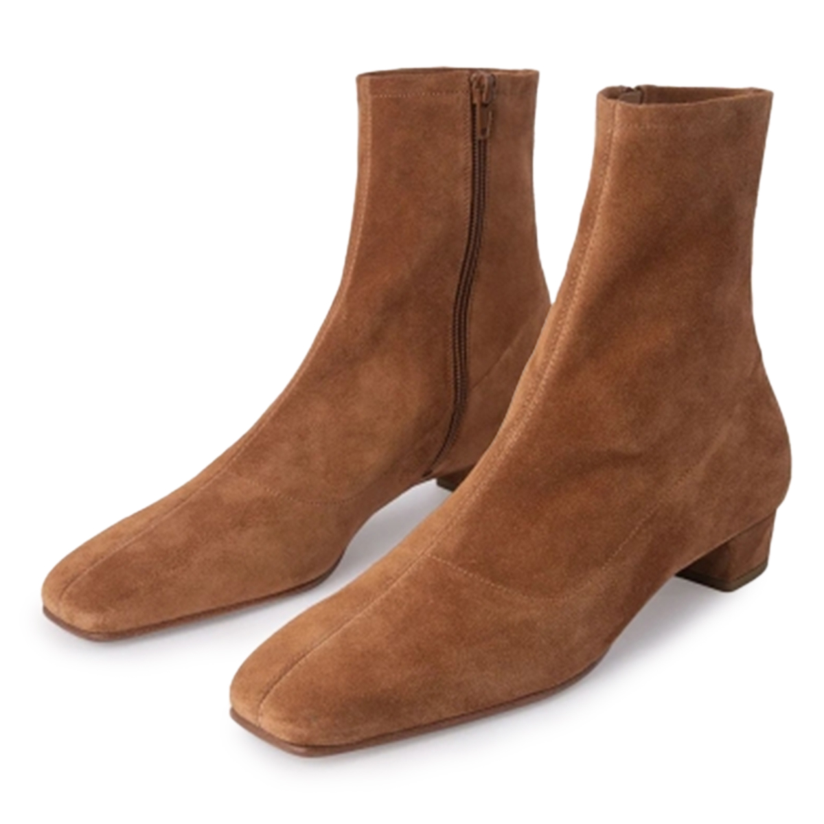 Brown Faux Suede Sophisticated Square Toe Side-Zipper Ankle Booties