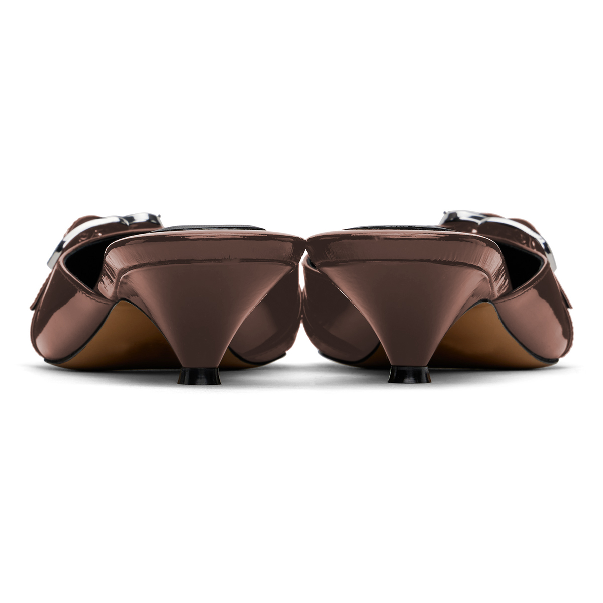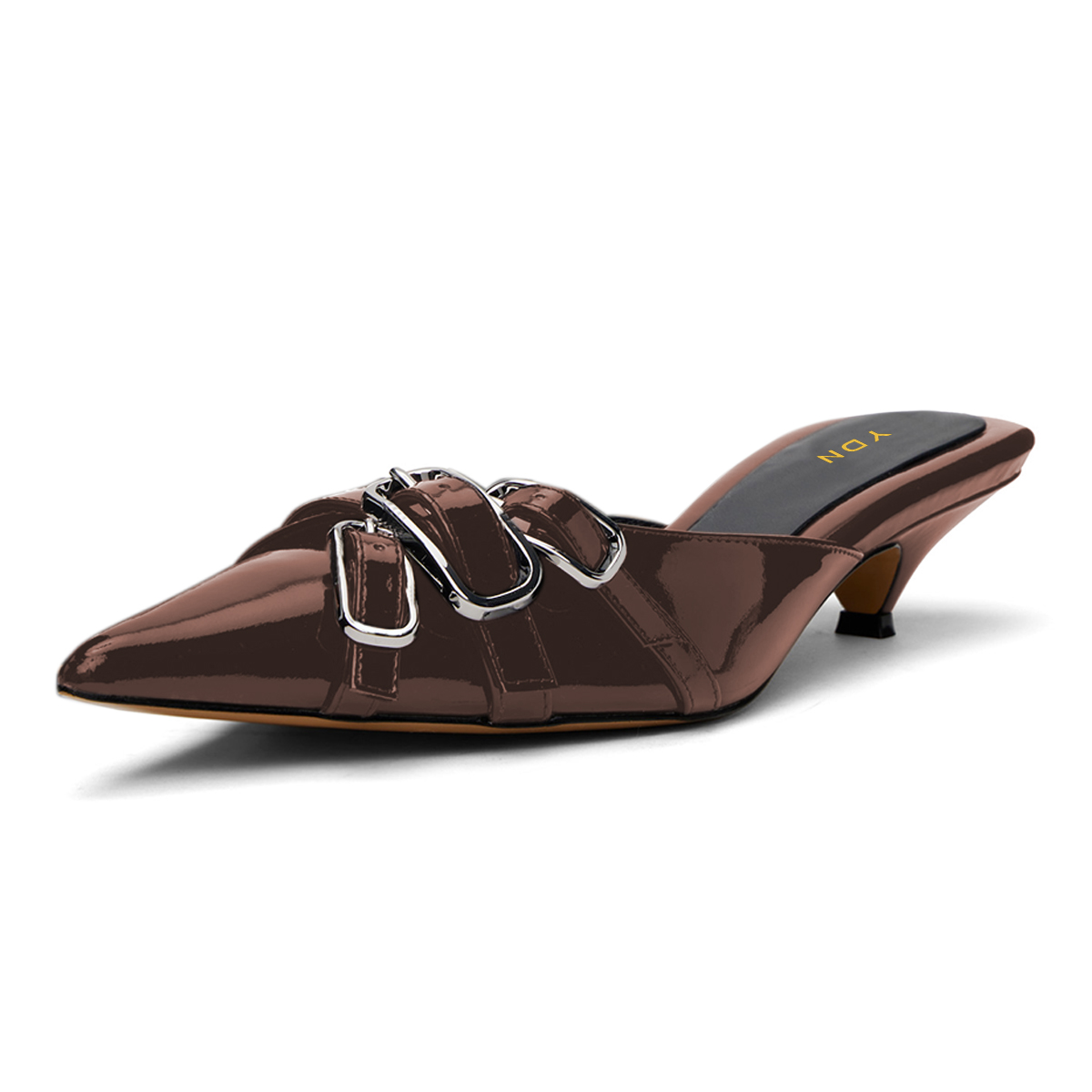 Brown Kitten Heel Buckle Strap Pointed Toe Mules for Women