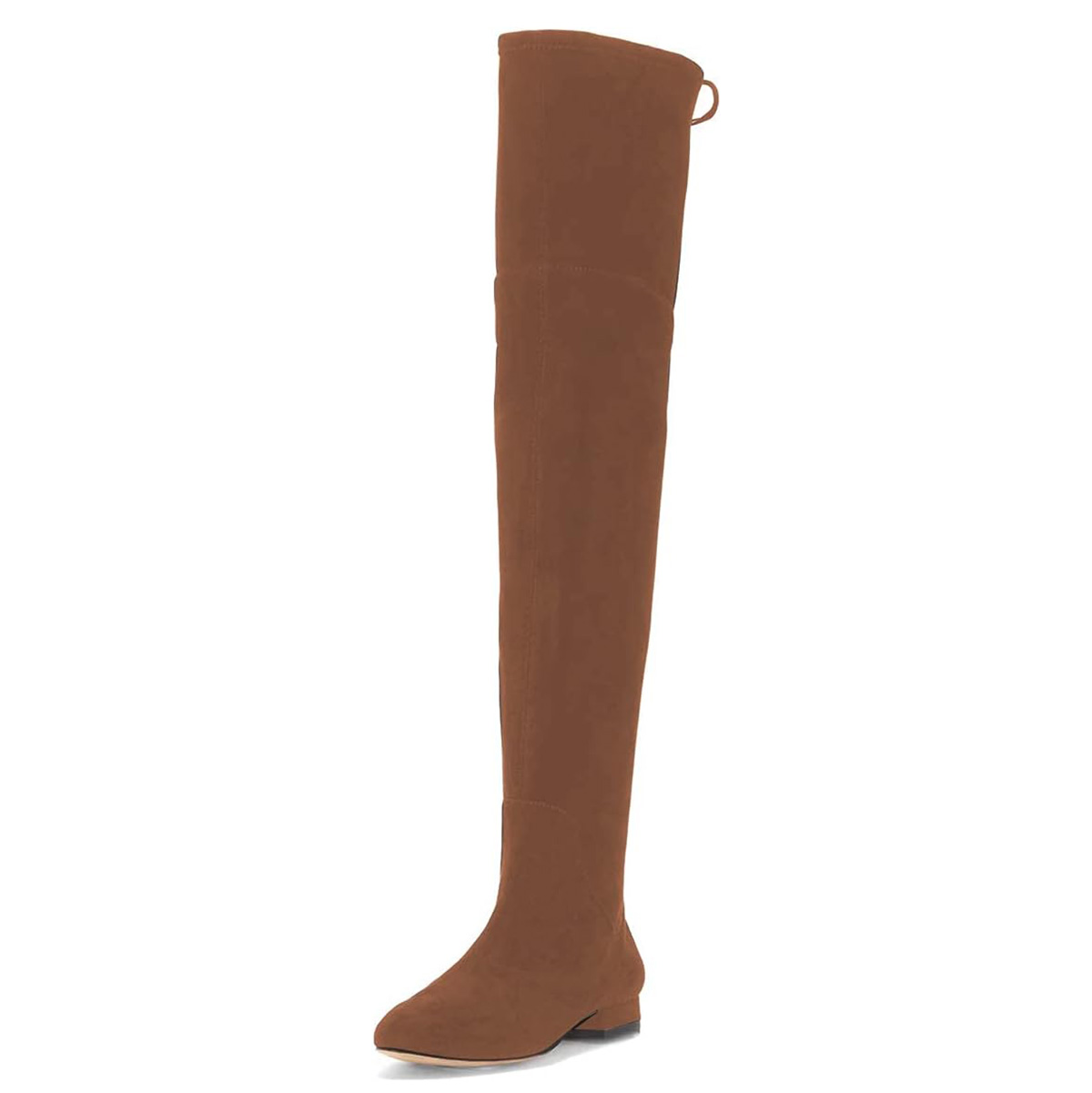 • Special Designs: The brown thigh-high boots feature a tie styling design with a low block heel.