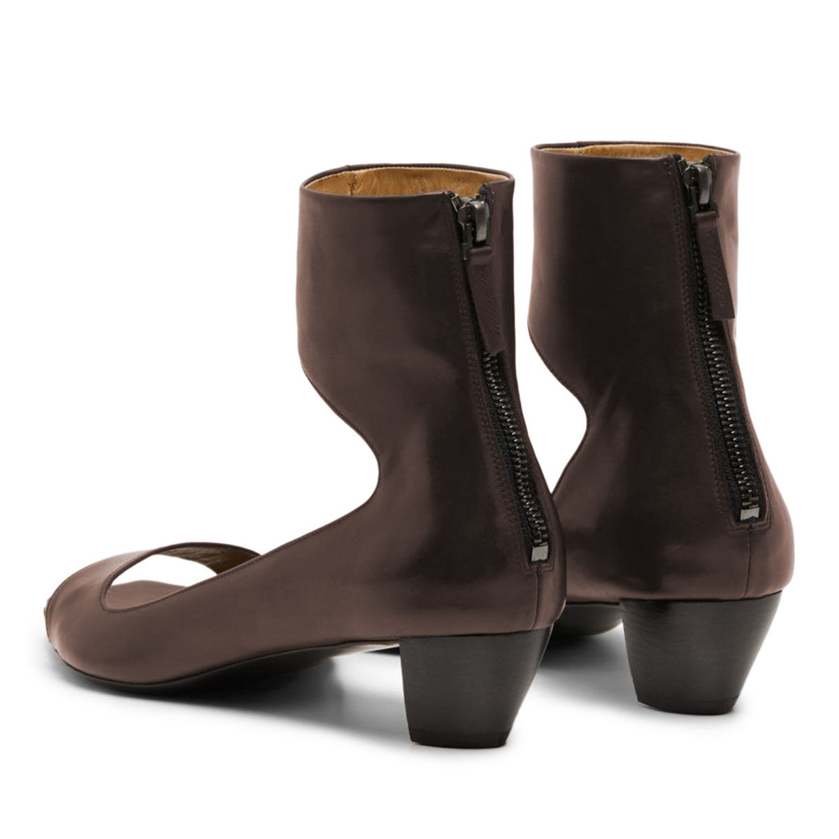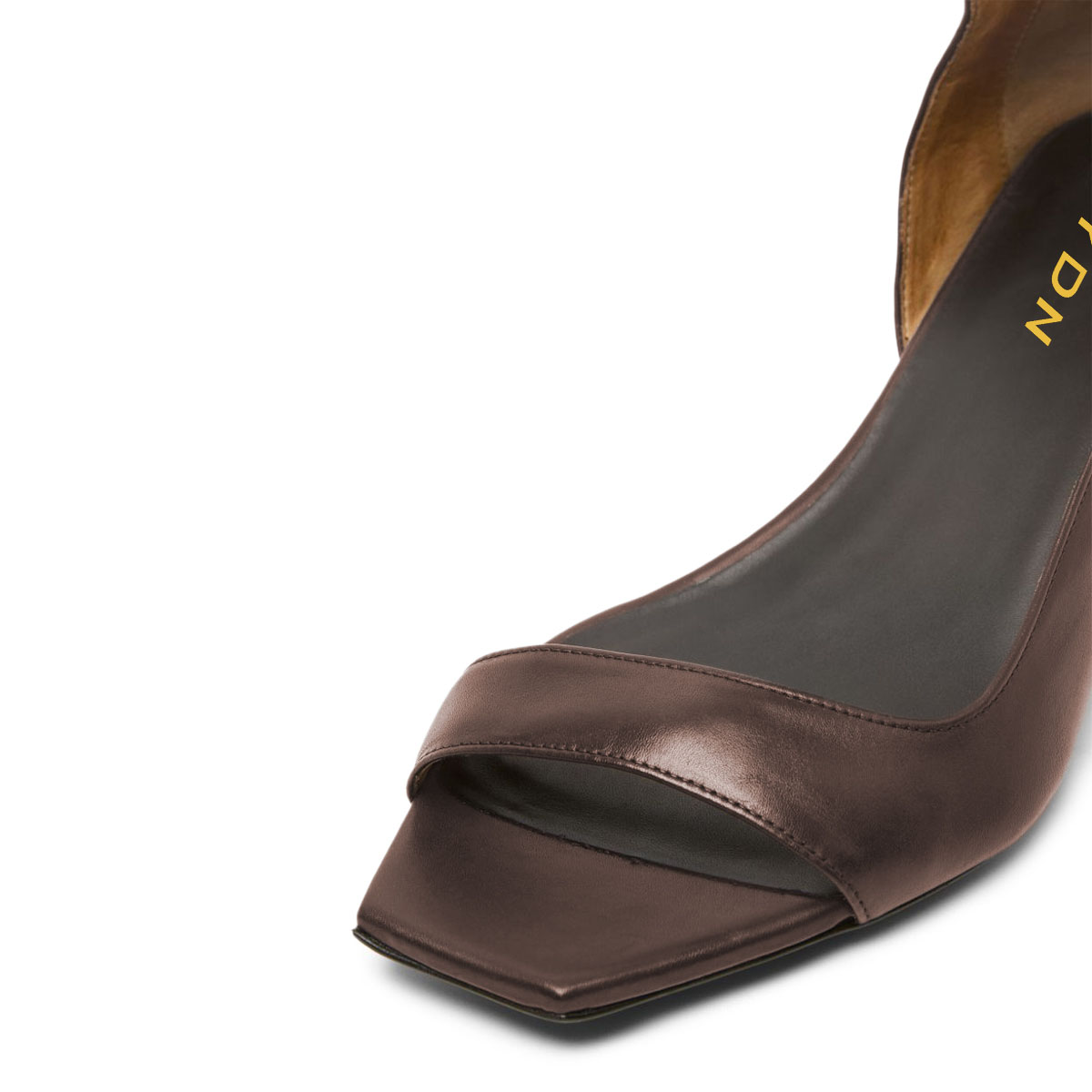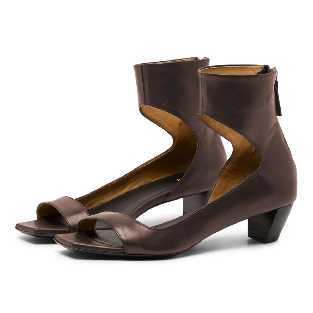 Brown Open Square Toe Strappy Women's Heel Sandals with Zipper