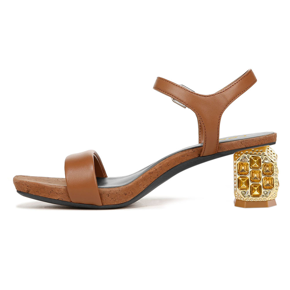Brown Open-Toe Ankle Strap Rhinestone Sculptural Heel Summer Sandals