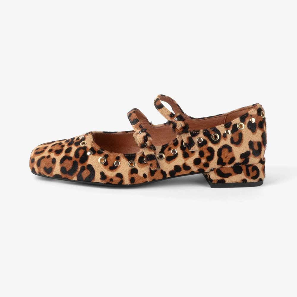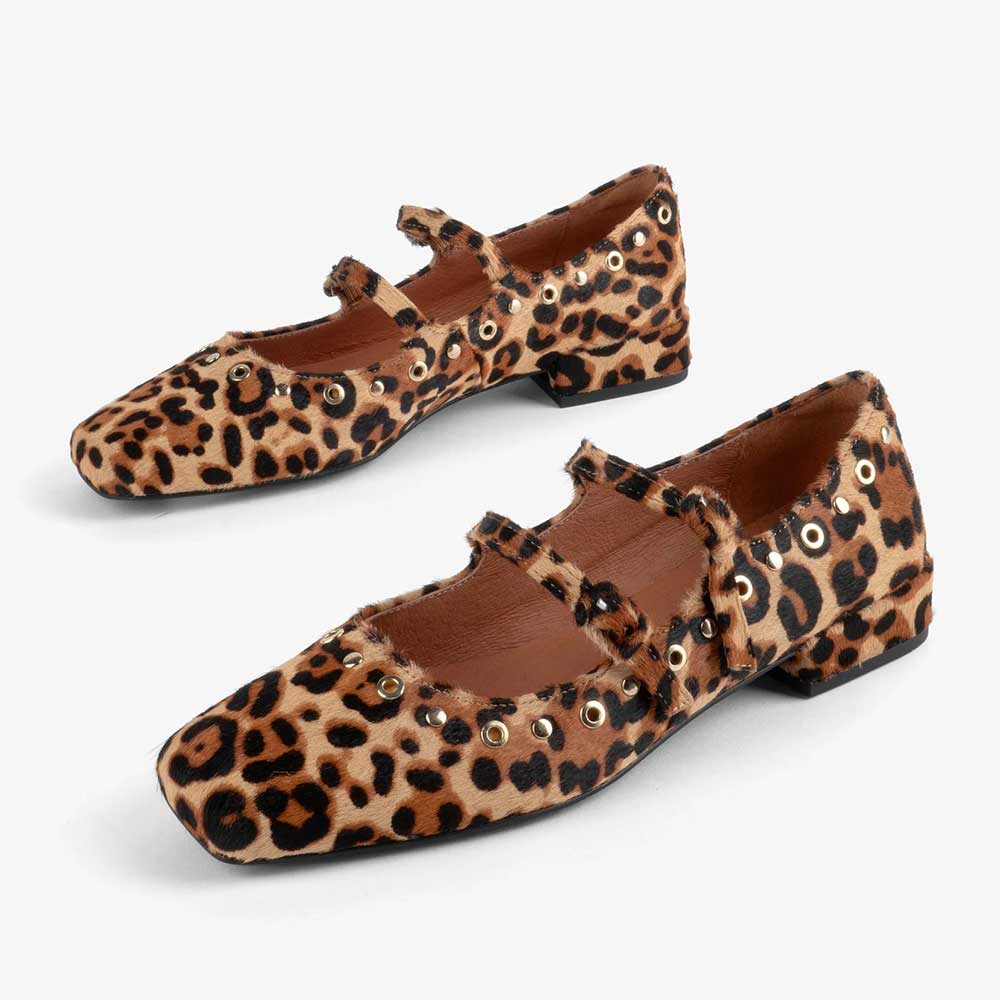 Brown Square Toe Block Heel Leopard Print Mary Jane Pumps for Women