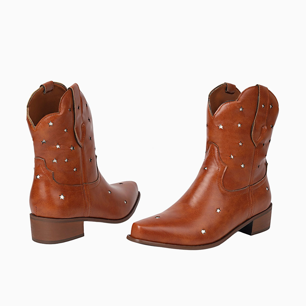 Special Designs: The cowgirl boots feature a square toe, a star hollow-out, and a chunky heel design.