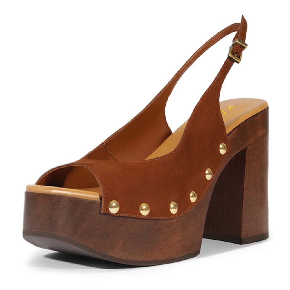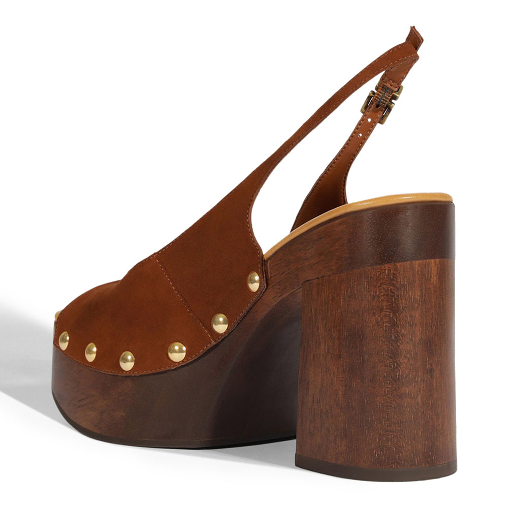 Brown Studded Block Heel Slingback Platform Sandals for Women