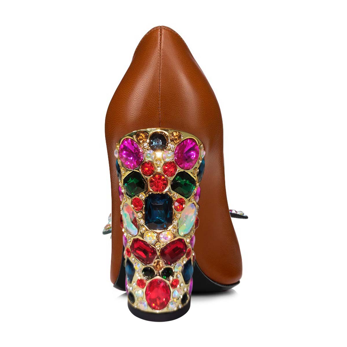 Brown Vegan Leather Chunky Heel Pumps Shoes with Jewelry Butterfly