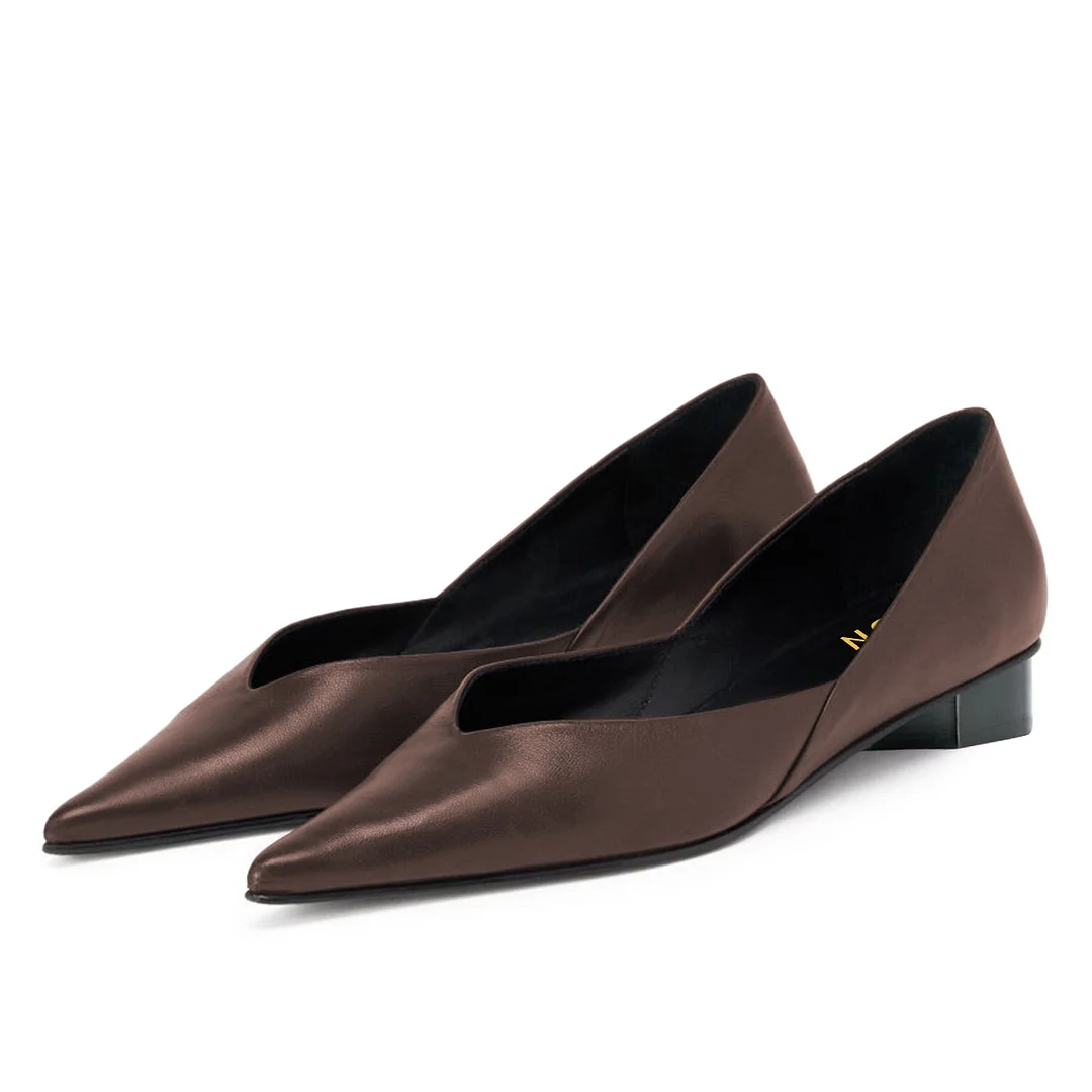 Brown Vegan Leather Pointed Toe Office Shoes Flat Pumps for Women