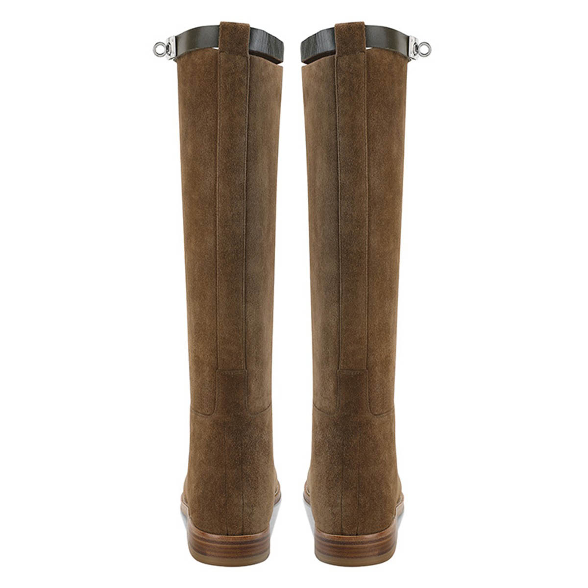 Brown Vegan Suede Knee High Closed Toe Flat Stylish Boots for Ladies