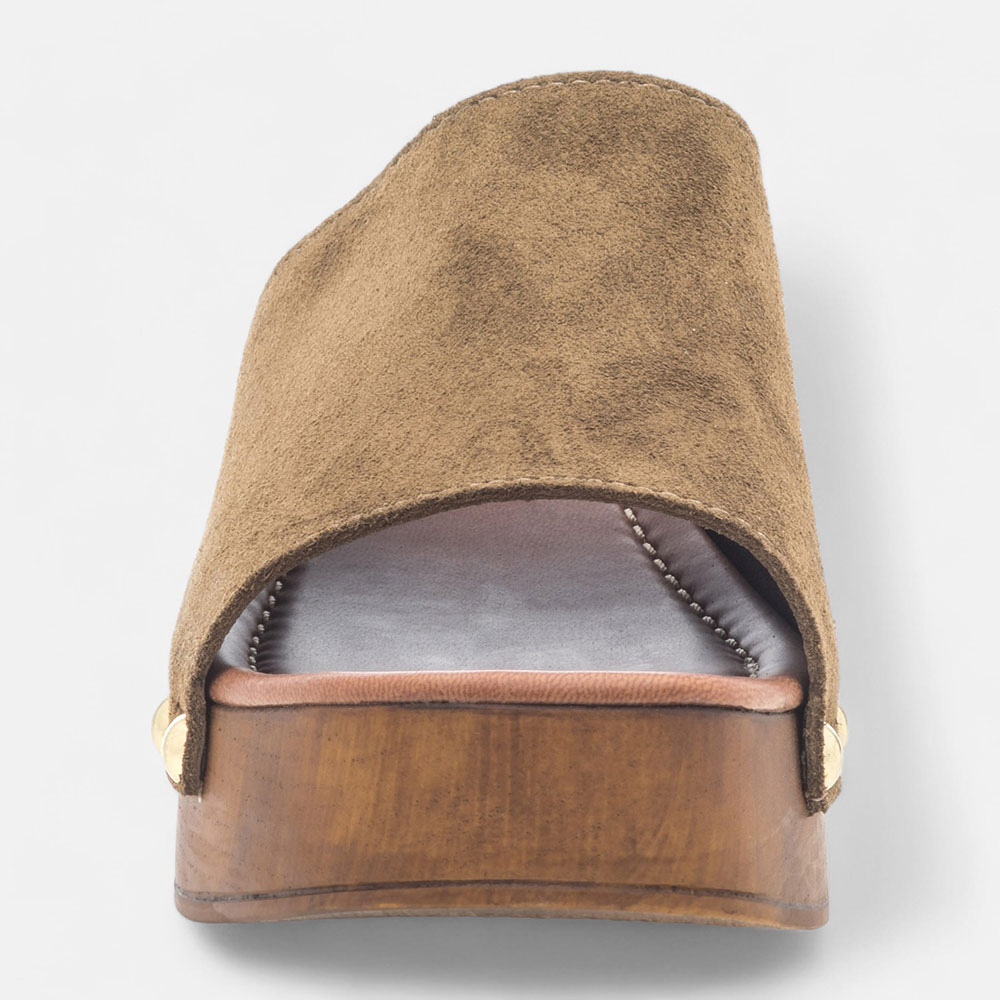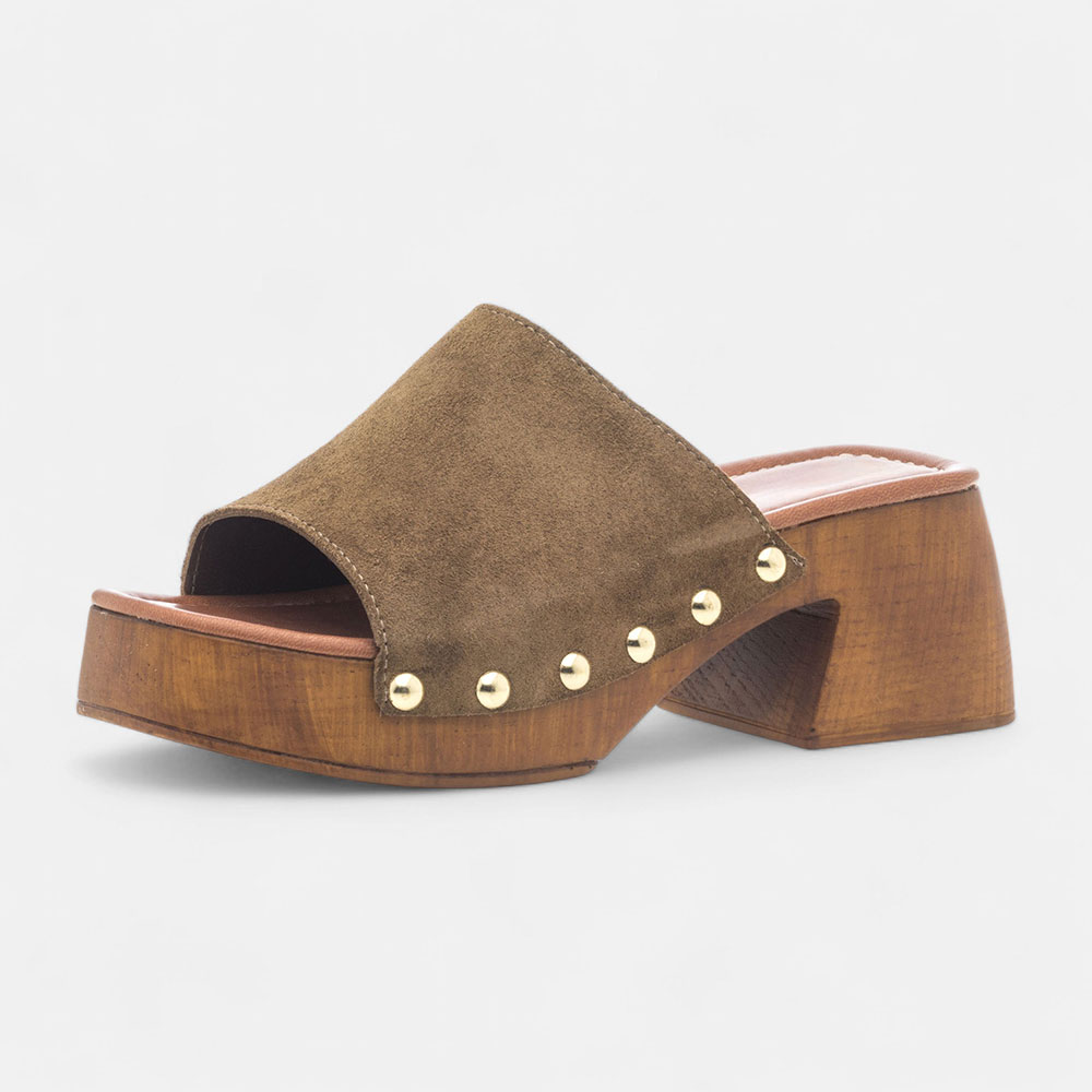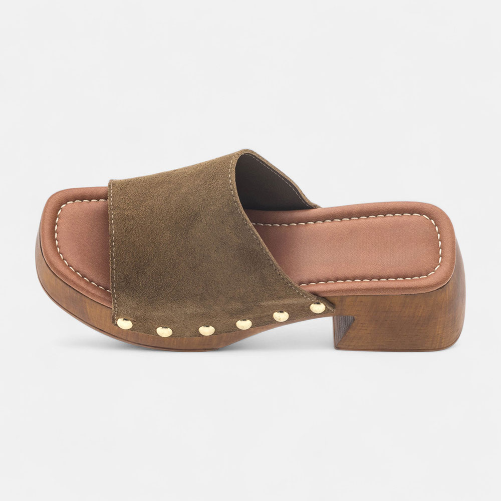Brown Vegan Suede Open Toe Studded Block Heel Platform Slide Sandals