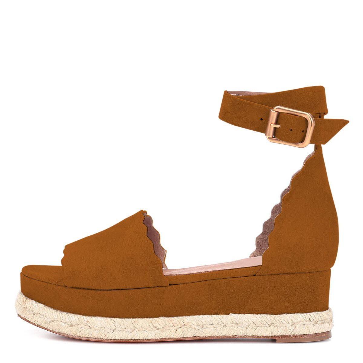 Brown Vegan Suede Open Toe Wave Edge Platform Sandals for Women