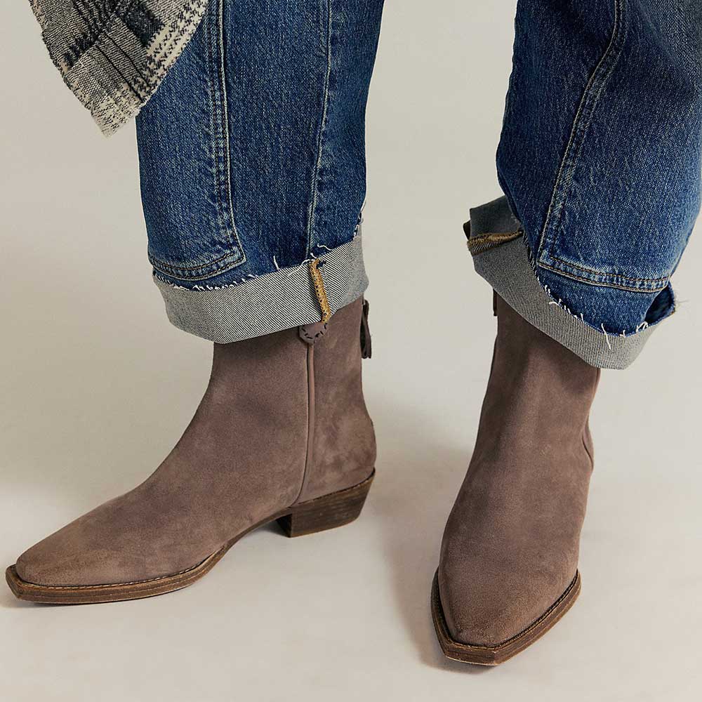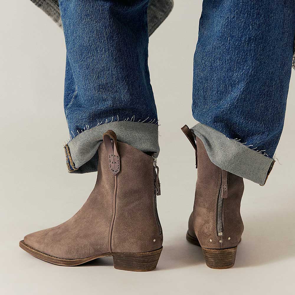 Taupe Vegan Suede Side Tab Back Zipper Western Boots for Women