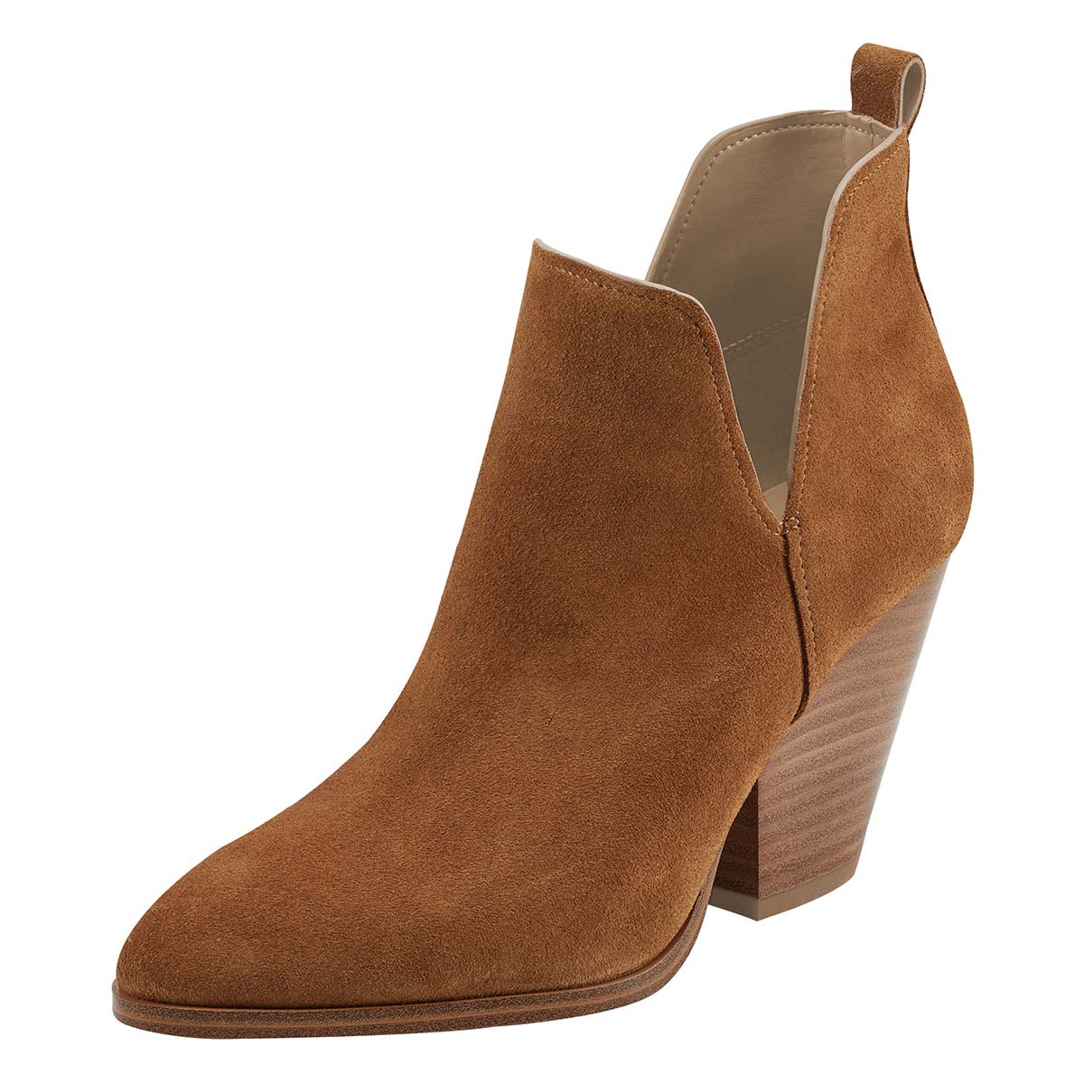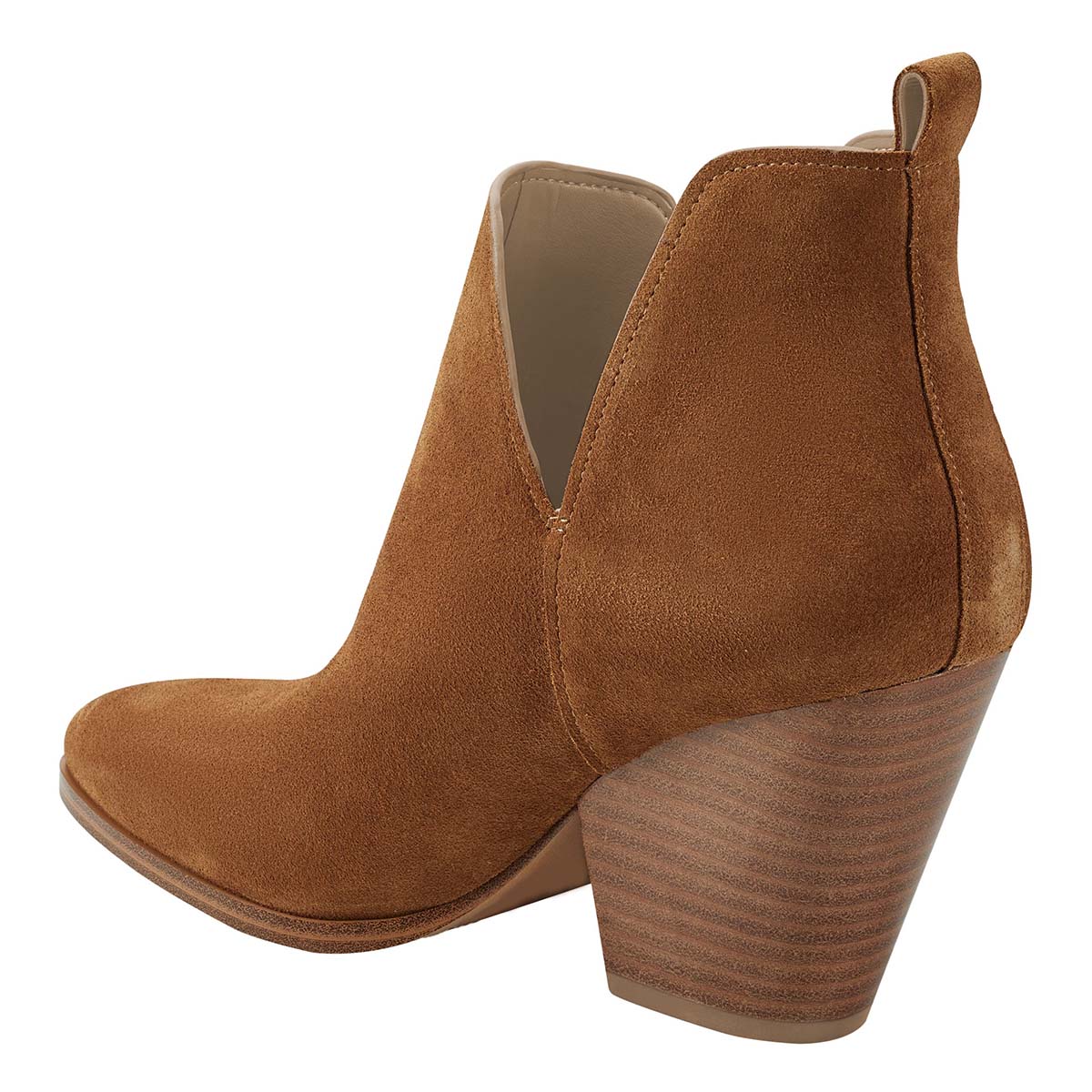 Brown Vegan Suede V Cut-Out Pointed Toe Stacked Heel Ankle Boots