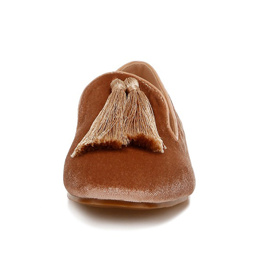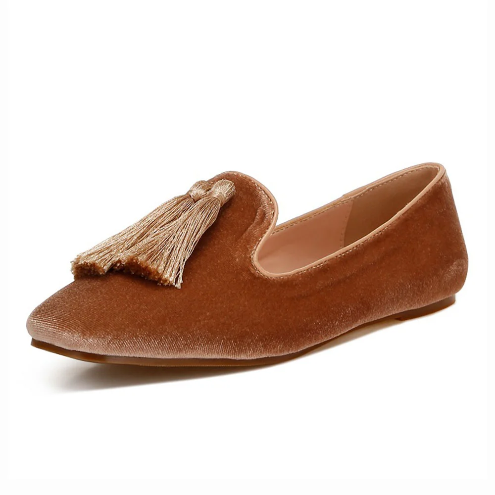 Brown Velvet Tassel Accent Casual Flat Women's Loafers By YDN