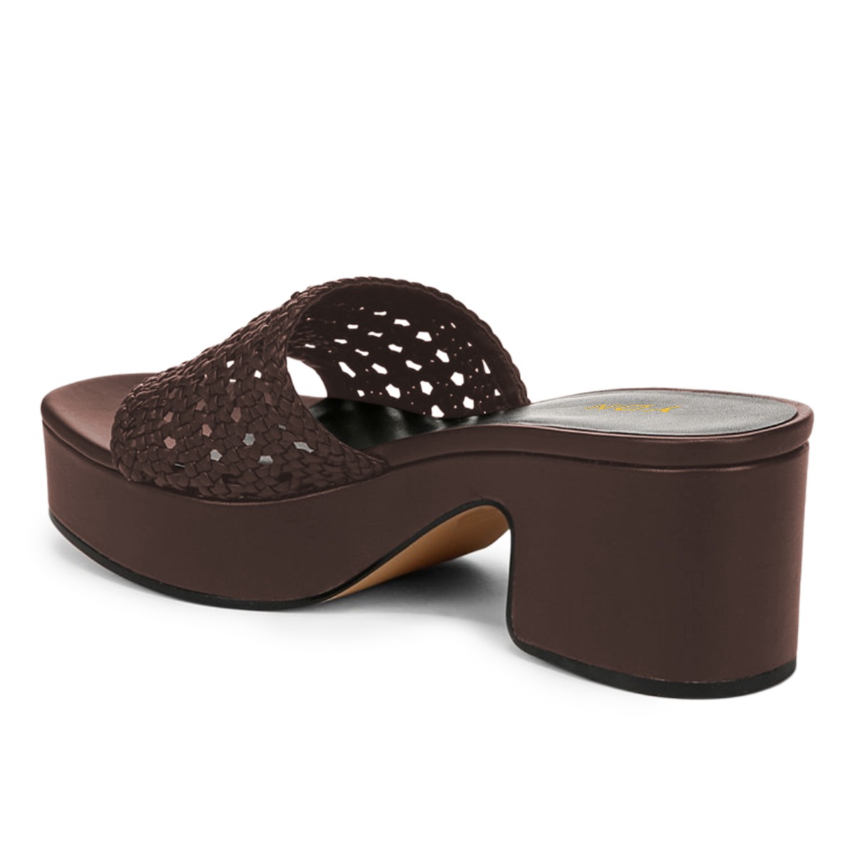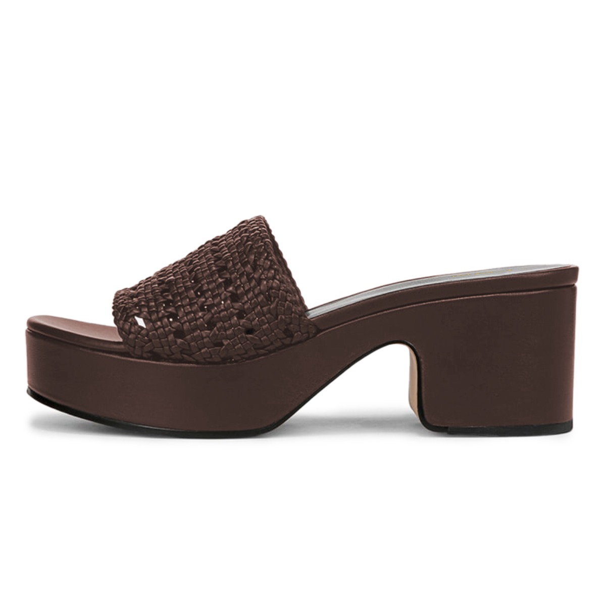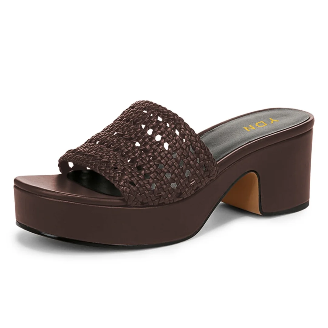 Brown Woven Detail Open Round Toe Block Heel Platform Slide Sandals