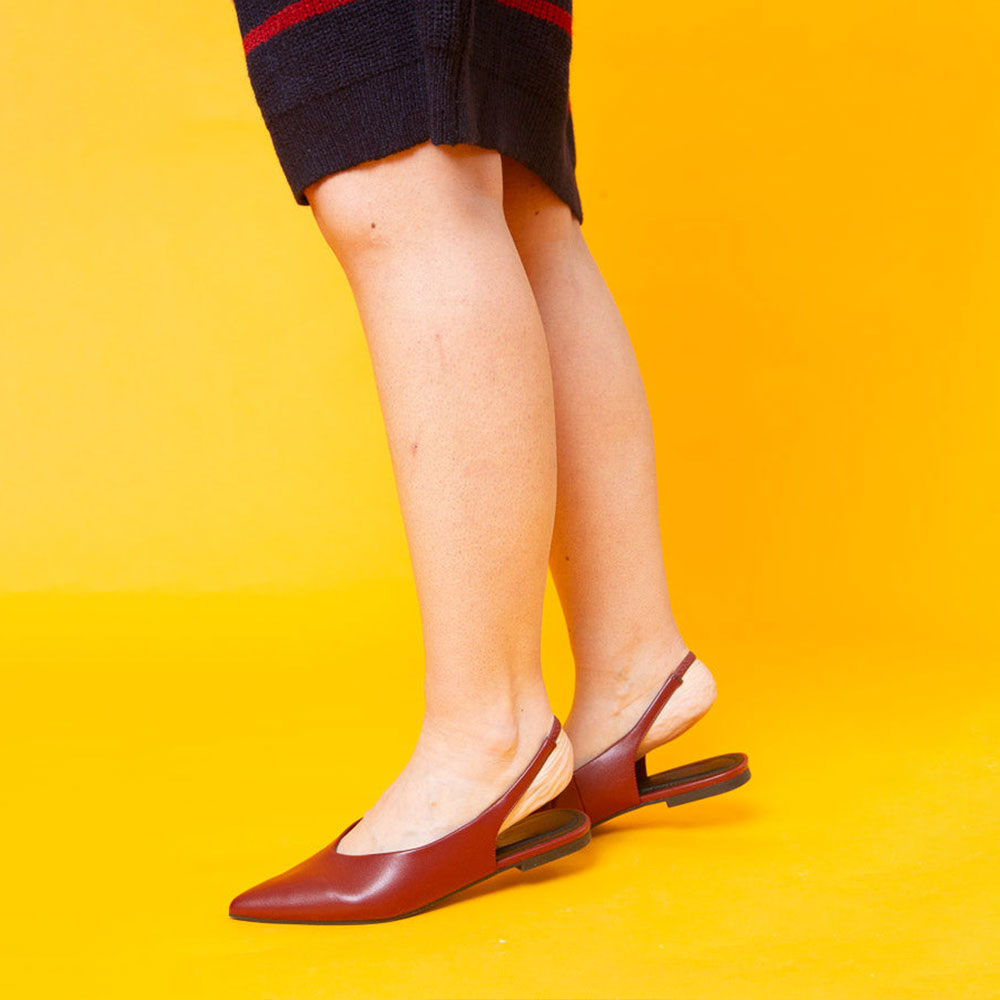 Burgundy Vegan Leather Pointed Toe Slingback Flat Shoes for Women