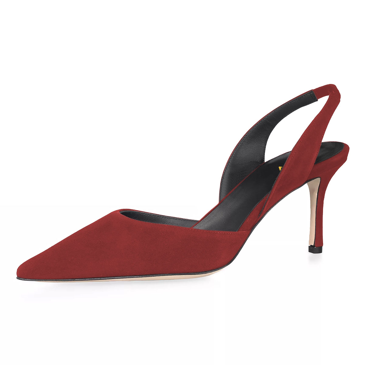 Burgundy Vegan Suede Stiletto Heel Pointed Toe Slingback Pumps