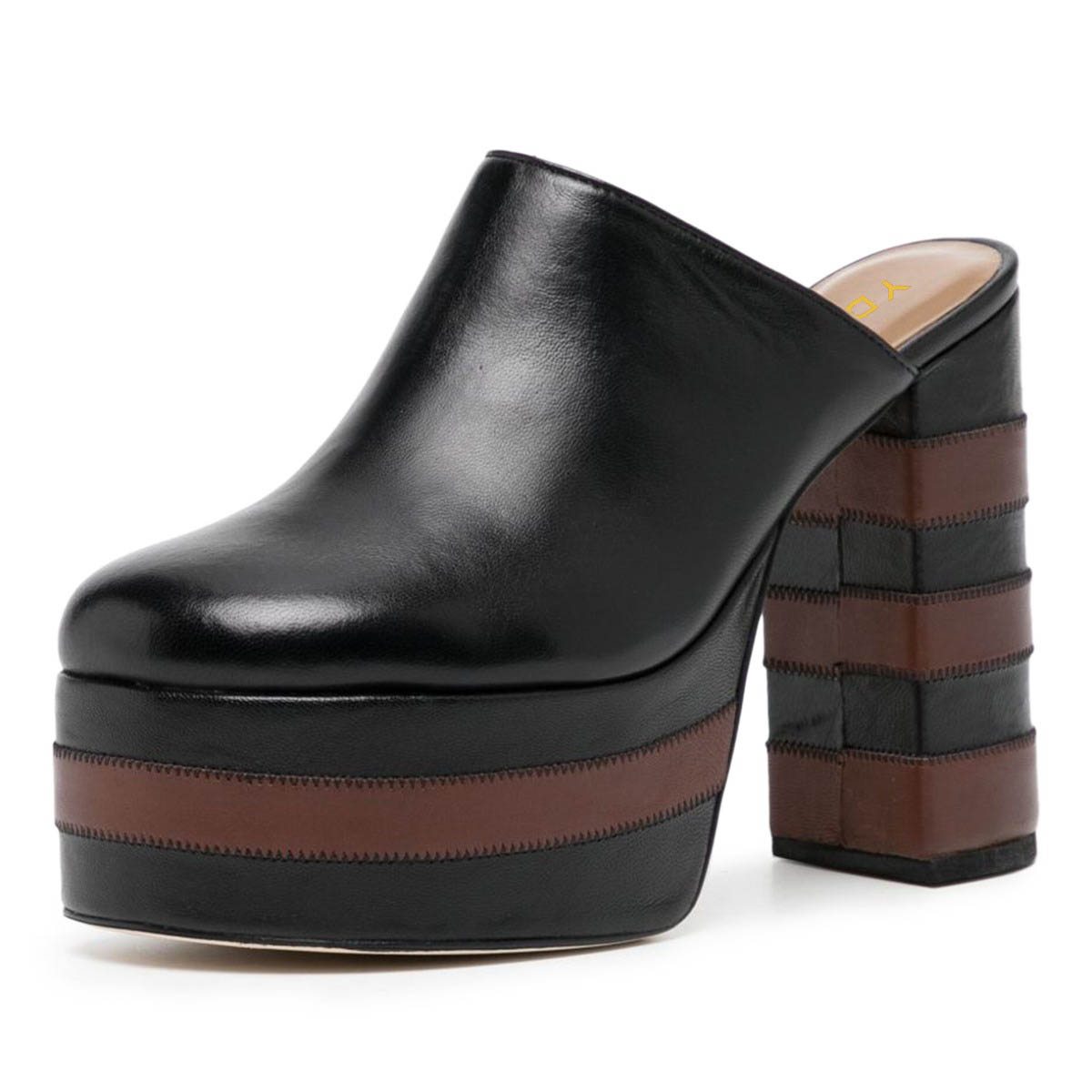 • Special Designs: These mules feature a casual style, a black and brown two-tone sole, a round toe, a platform high heel, and a slip-on design.
