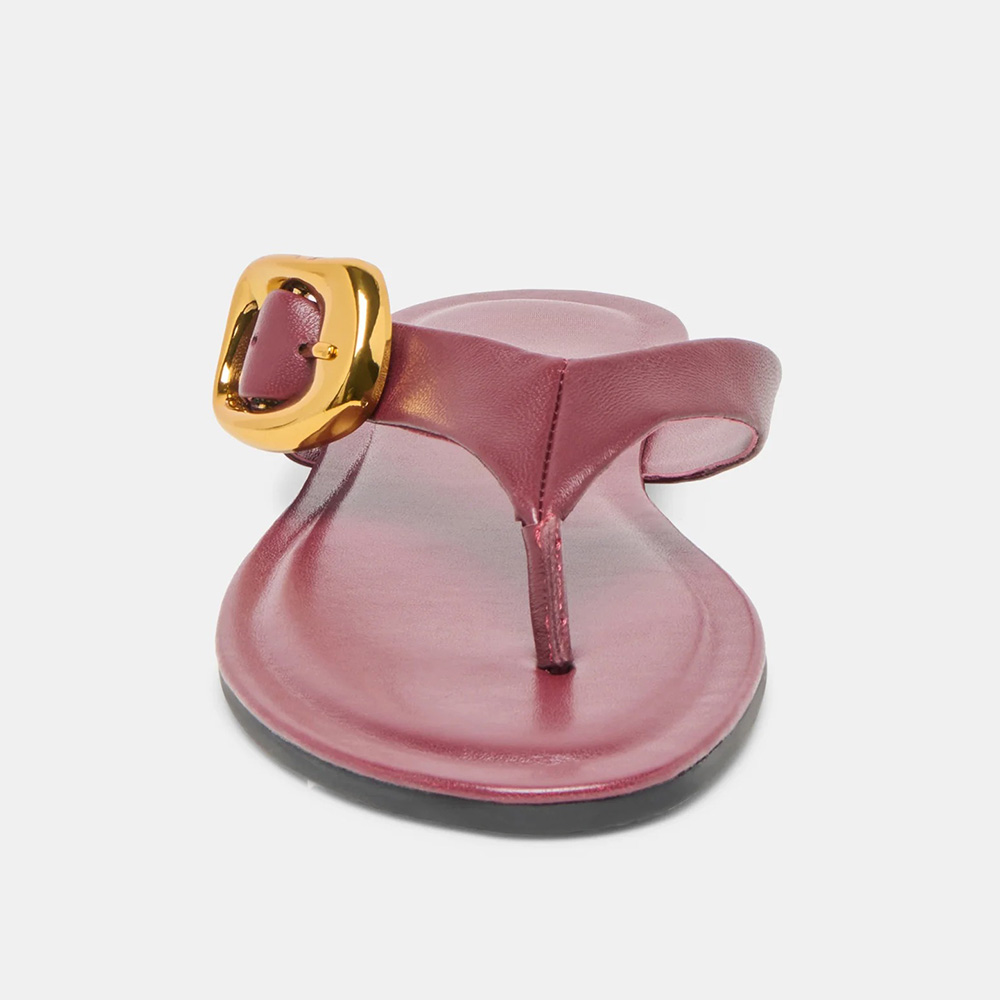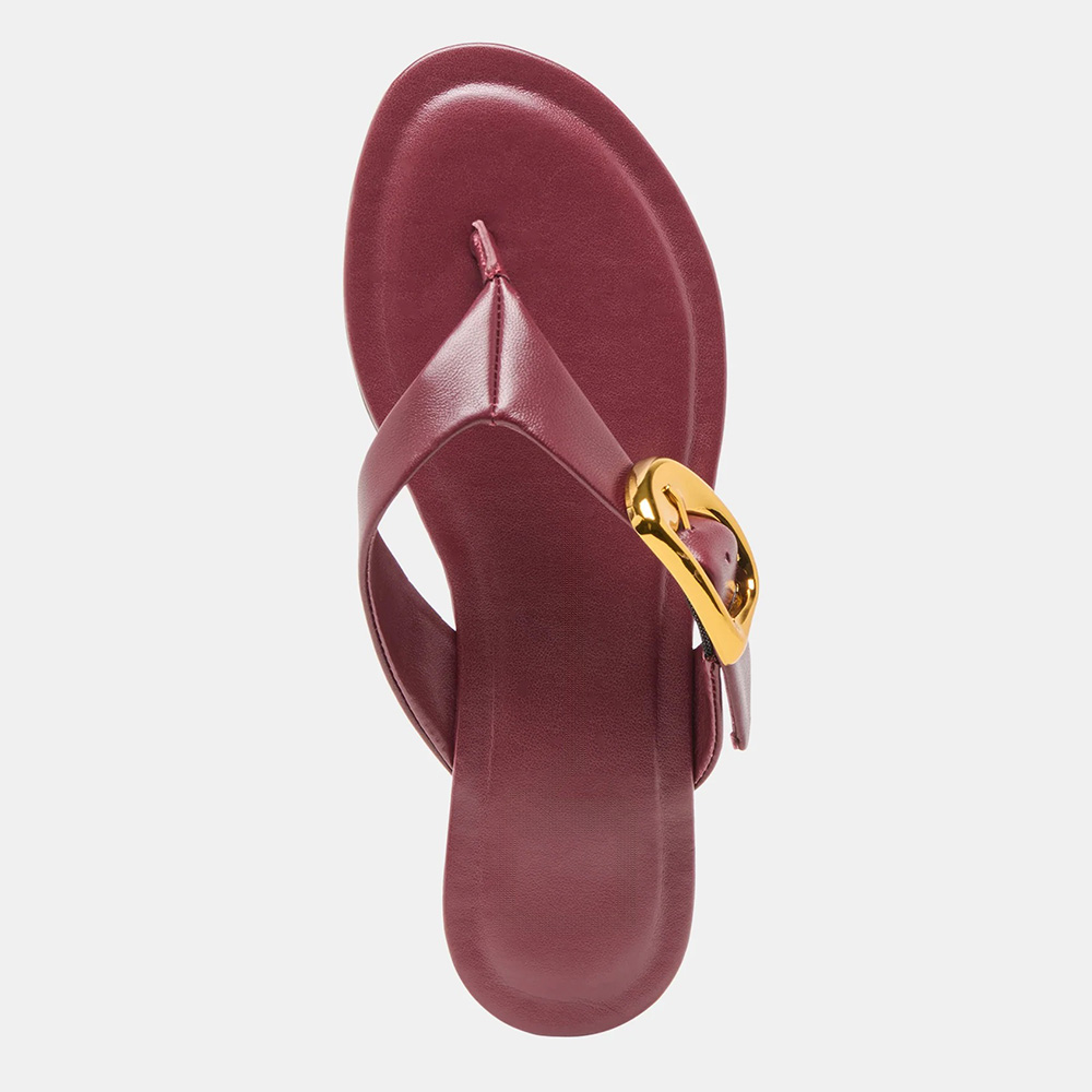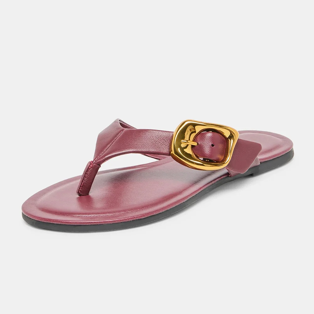 Casual Burgundy Open Round Toe Buckle Decor Flip Flops for Women