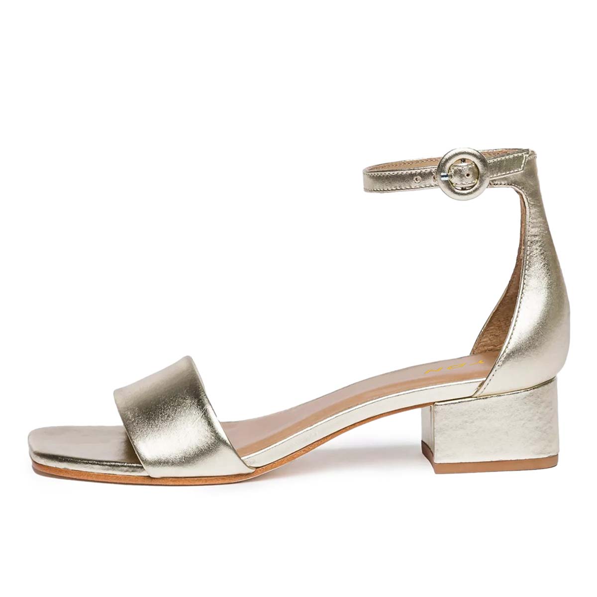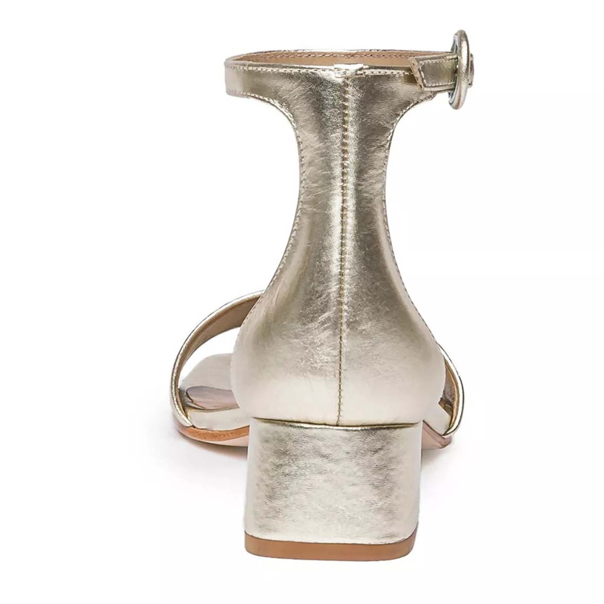 Champagne Metallic Finish Open Toe Ankle Strap Block Heel Sandals