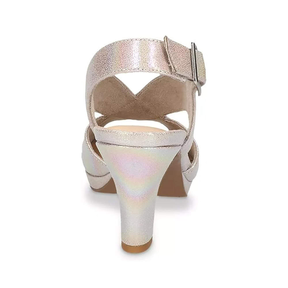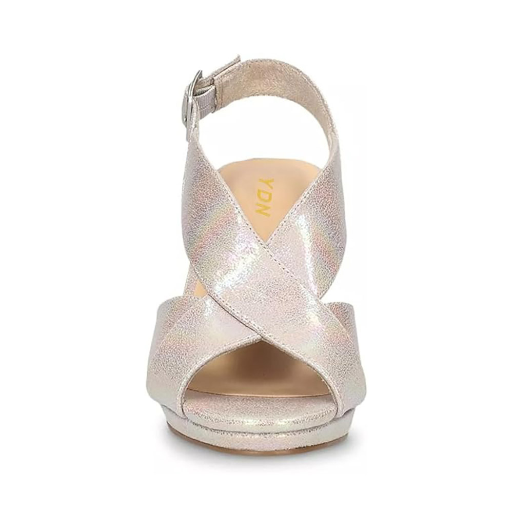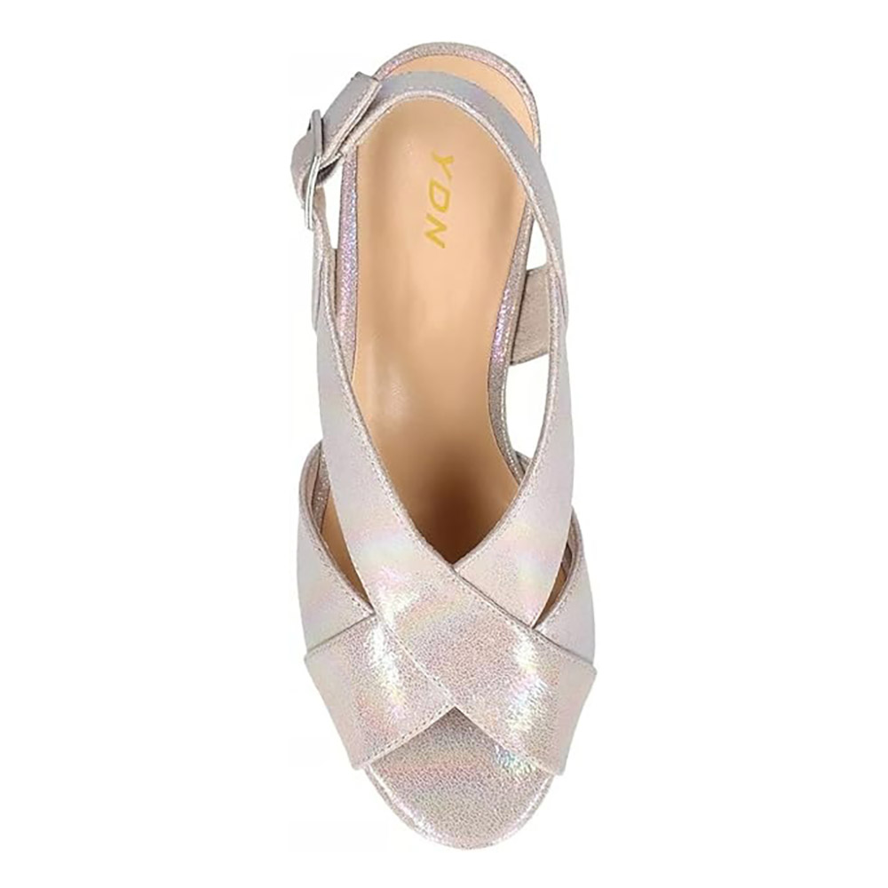 • Special Designs: The champagne natural iridescent platform sandals feature a crisscross strap design on the vamp, an adjustable slingback strap with a buckle, and a chunky heel.