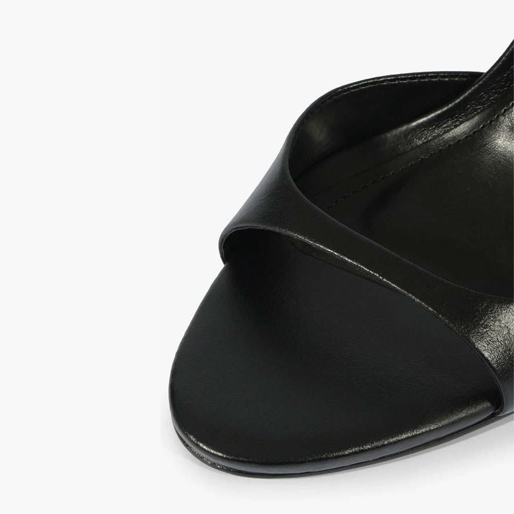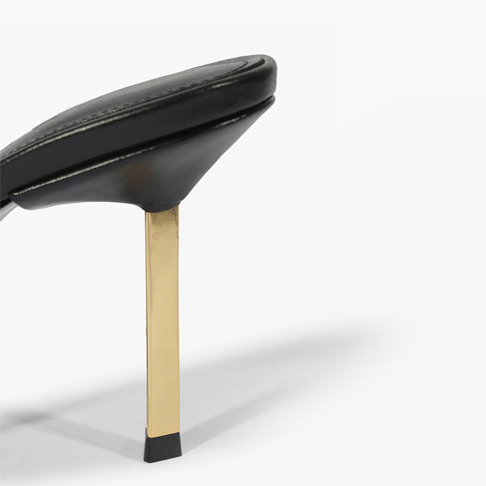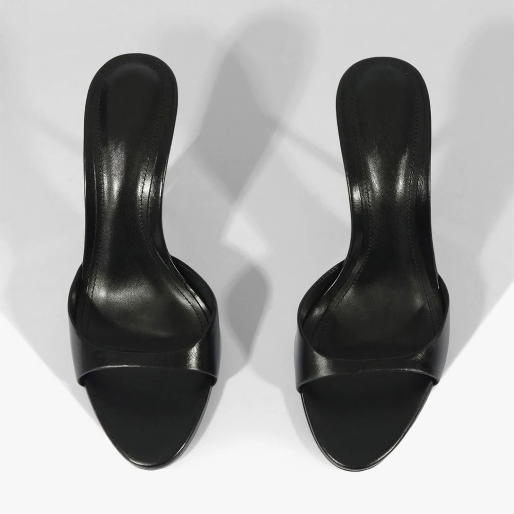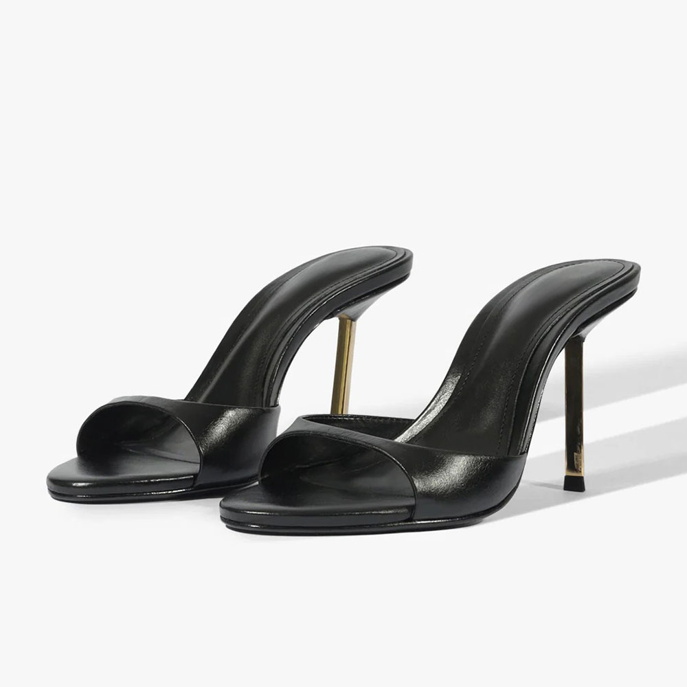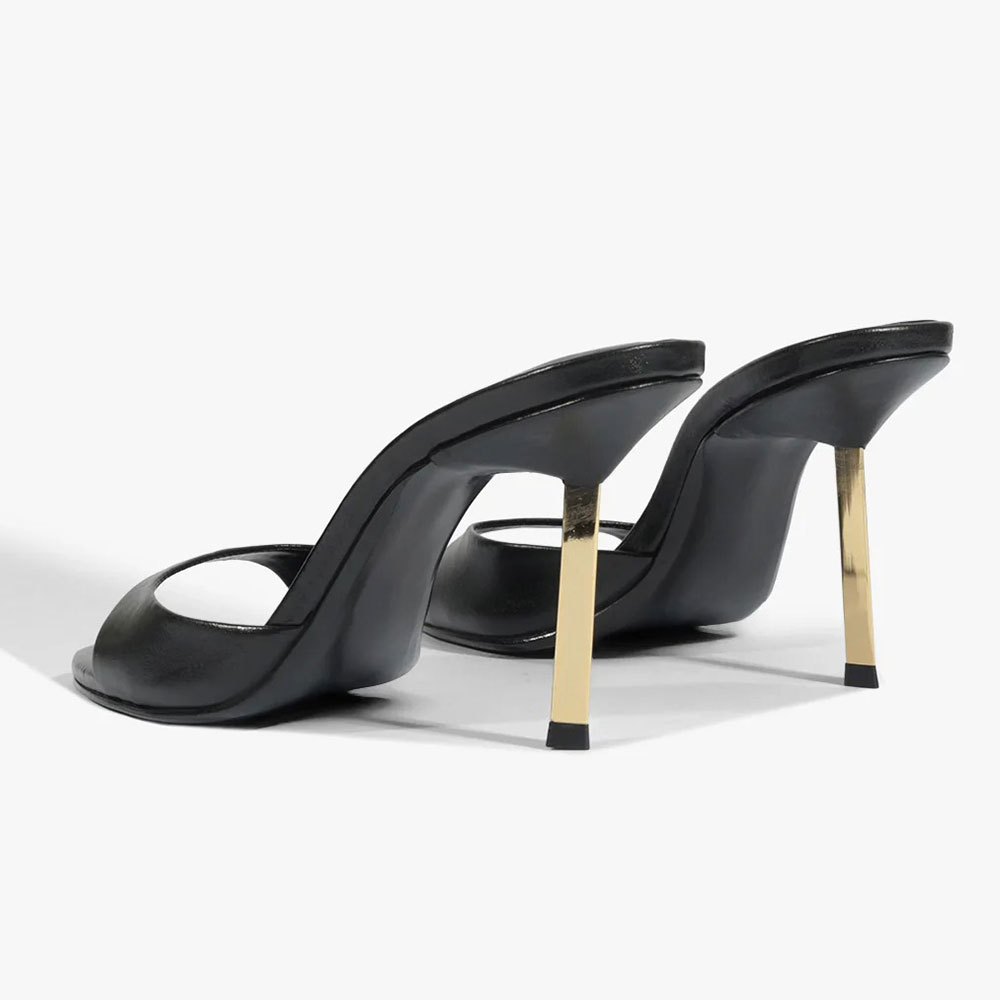 Special Designs: These black mules feature an open round toe, a stiletto heel, and slip on very easily.
